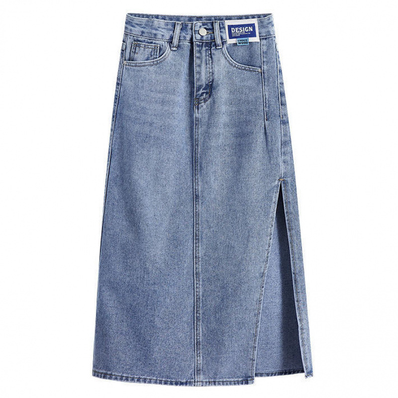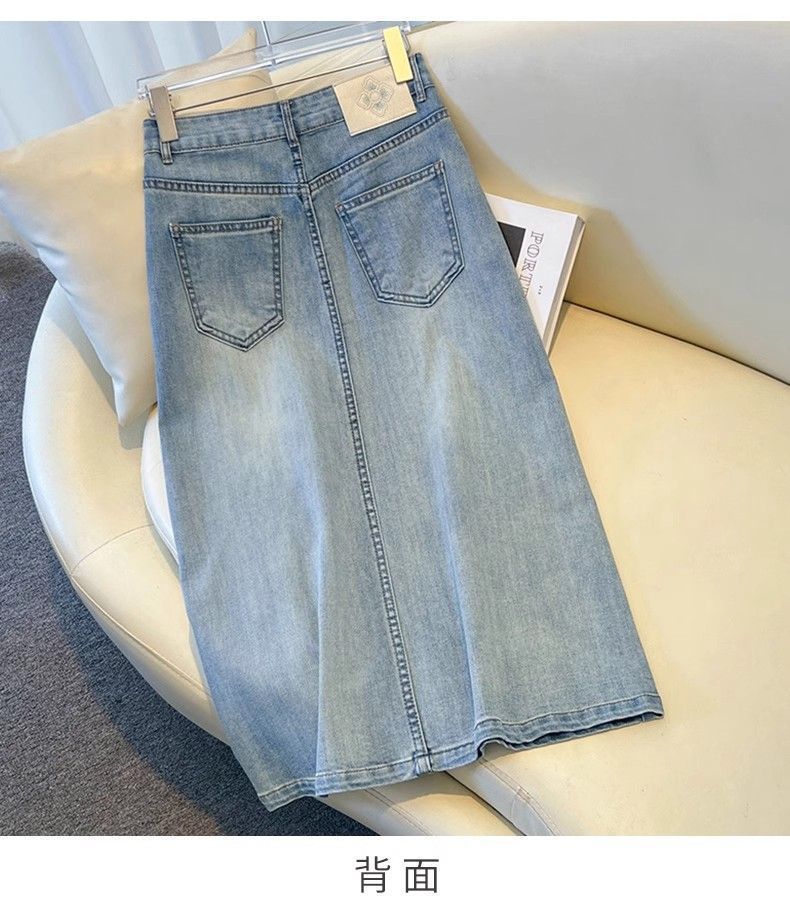 2025 년 여름 새로운 새로운 중국 자수 버클 데님 스커트 여성 높은 허리 분할 복고풍 엉덩이 A 라인 스커트스토어 가기