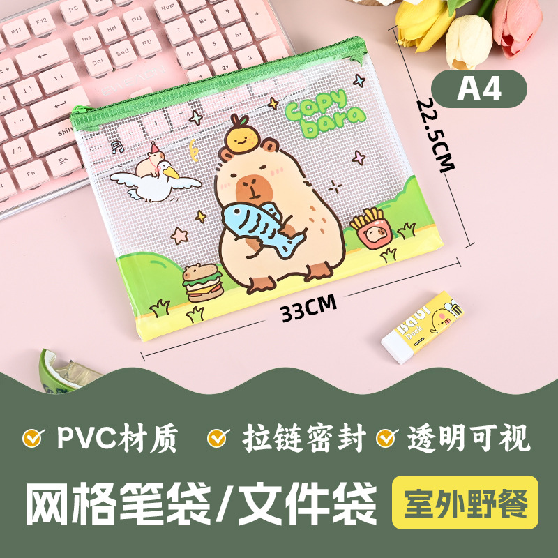 PVC 메쉬 파일 가방 필통 로고 맞춤 카피발라 수납 가방 만화 A4 서류 가방 친환경 PVC