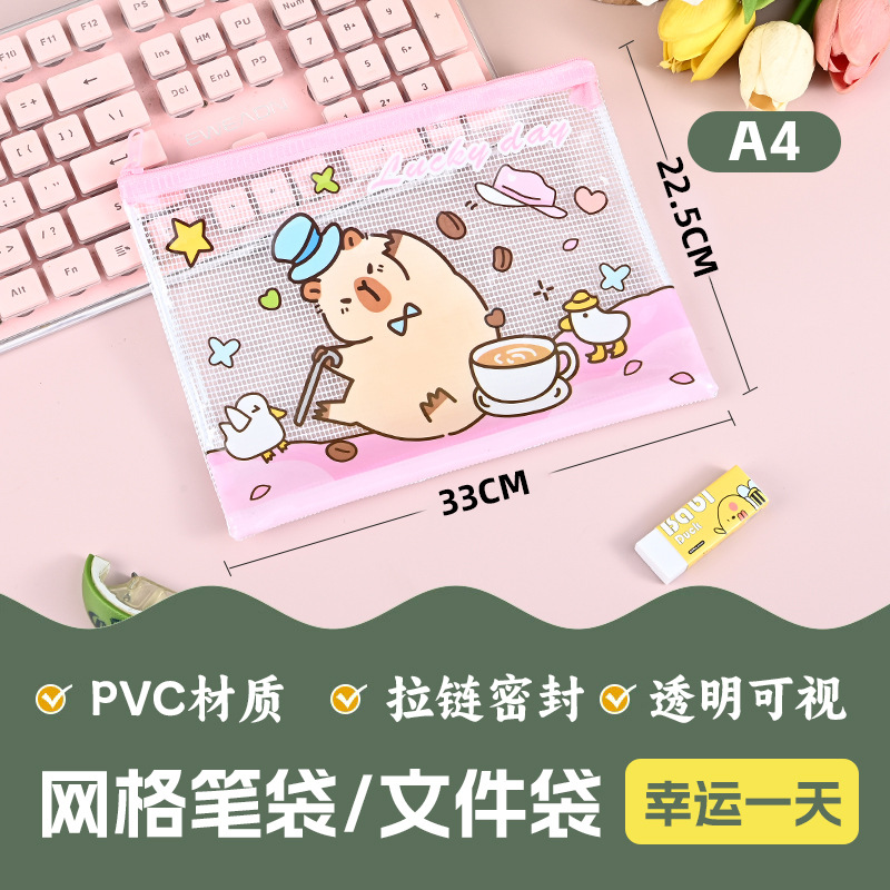 PVC 메쉬 파일 가방 필통 로고 맞춤 카피발라 수납 가방 만화 A4 서류 가방 친환경 PVC스토어 가기