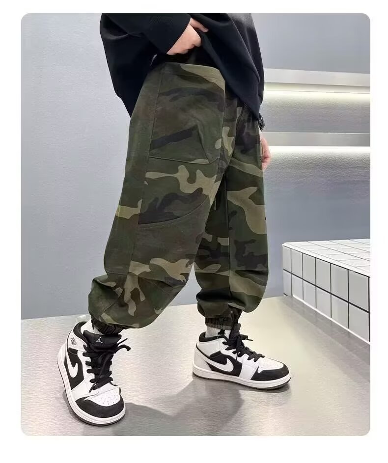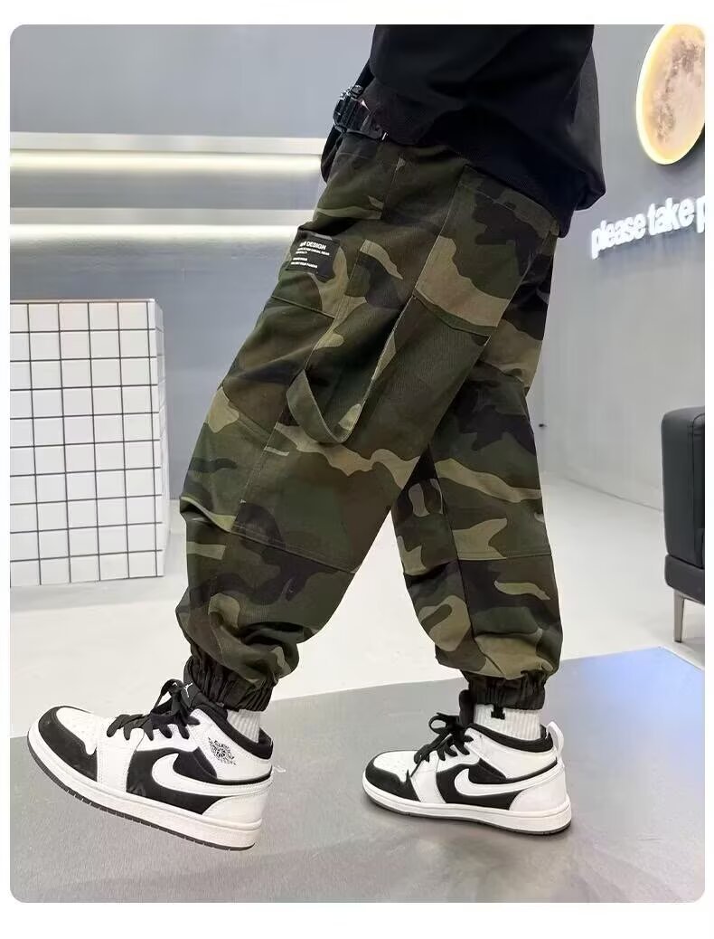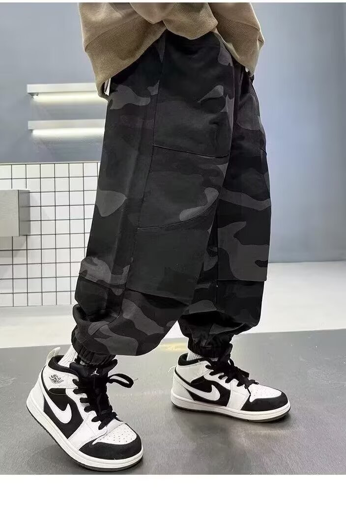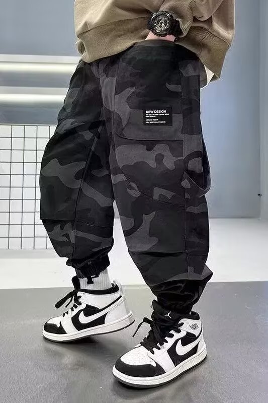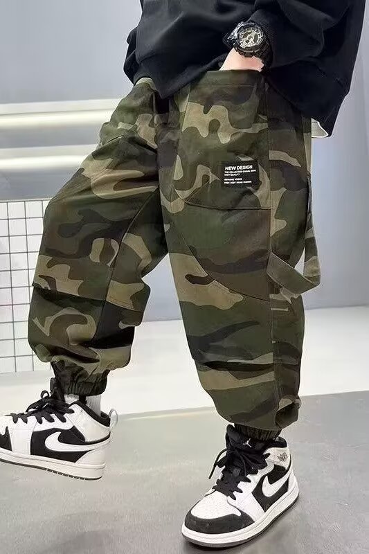 소년 위장 크레인 바지 2025 봄과 가을 새 도착 빅보이 번들 다발 캐주얼 바지 한국 잘 생긴 어린이 바지스토어 가기