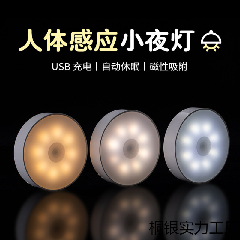 현대 간단한 라운드 지능형 인체 유도 충전 휴대용 마그네틱 나이트 라이트 기숙사 의류 램프