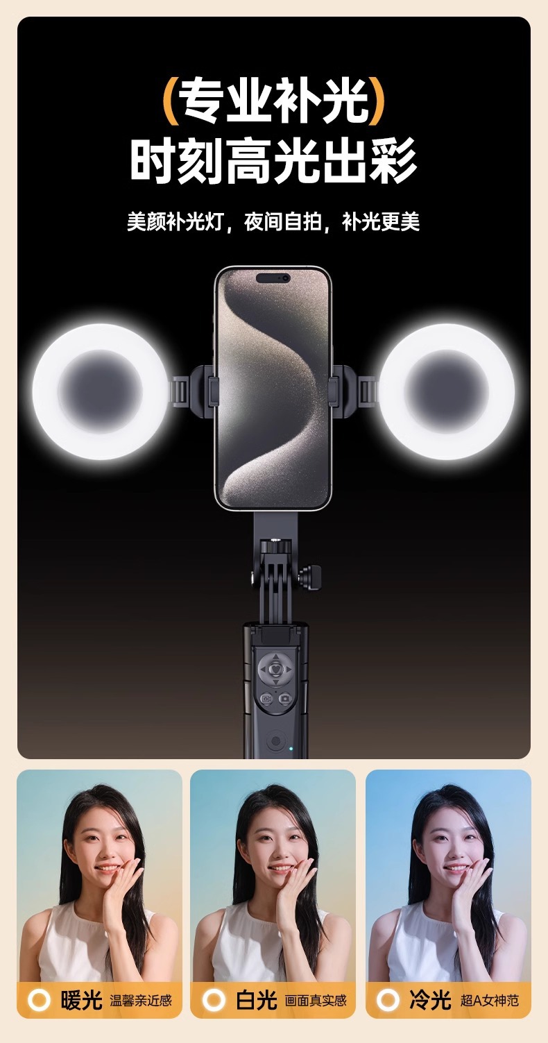 • 1.8m 검정색 + 듀얼 뷰티 램프 + 충전식 Douyin 리모컨.