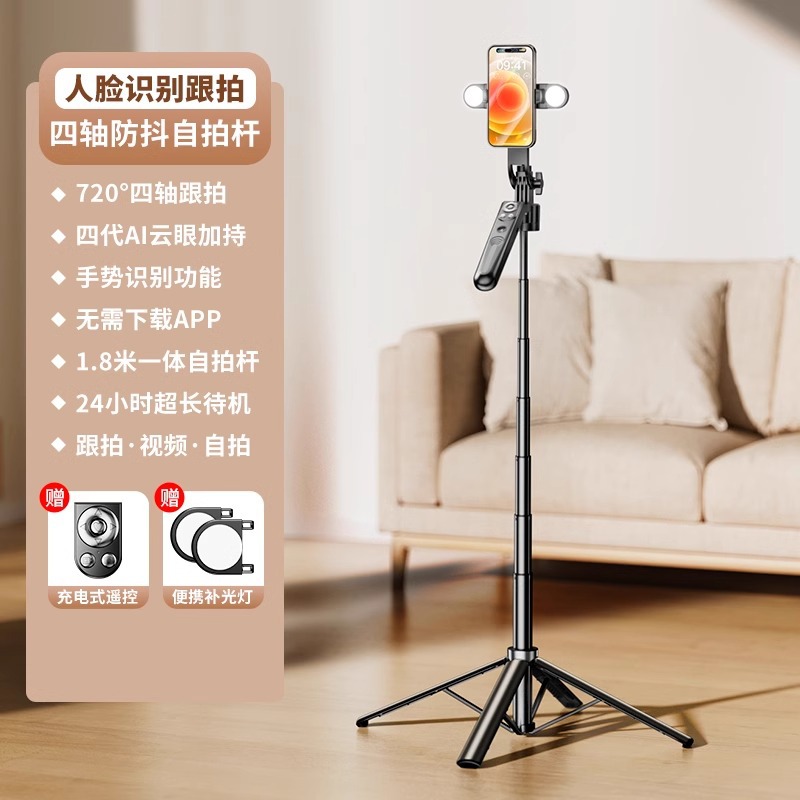 2025 새로운 AI 지능형 후속 팬 틸트 셀프 타이머 레버 360 도 회전 착륙 1.8 m 라이브 삼각대 흔들림 방지
