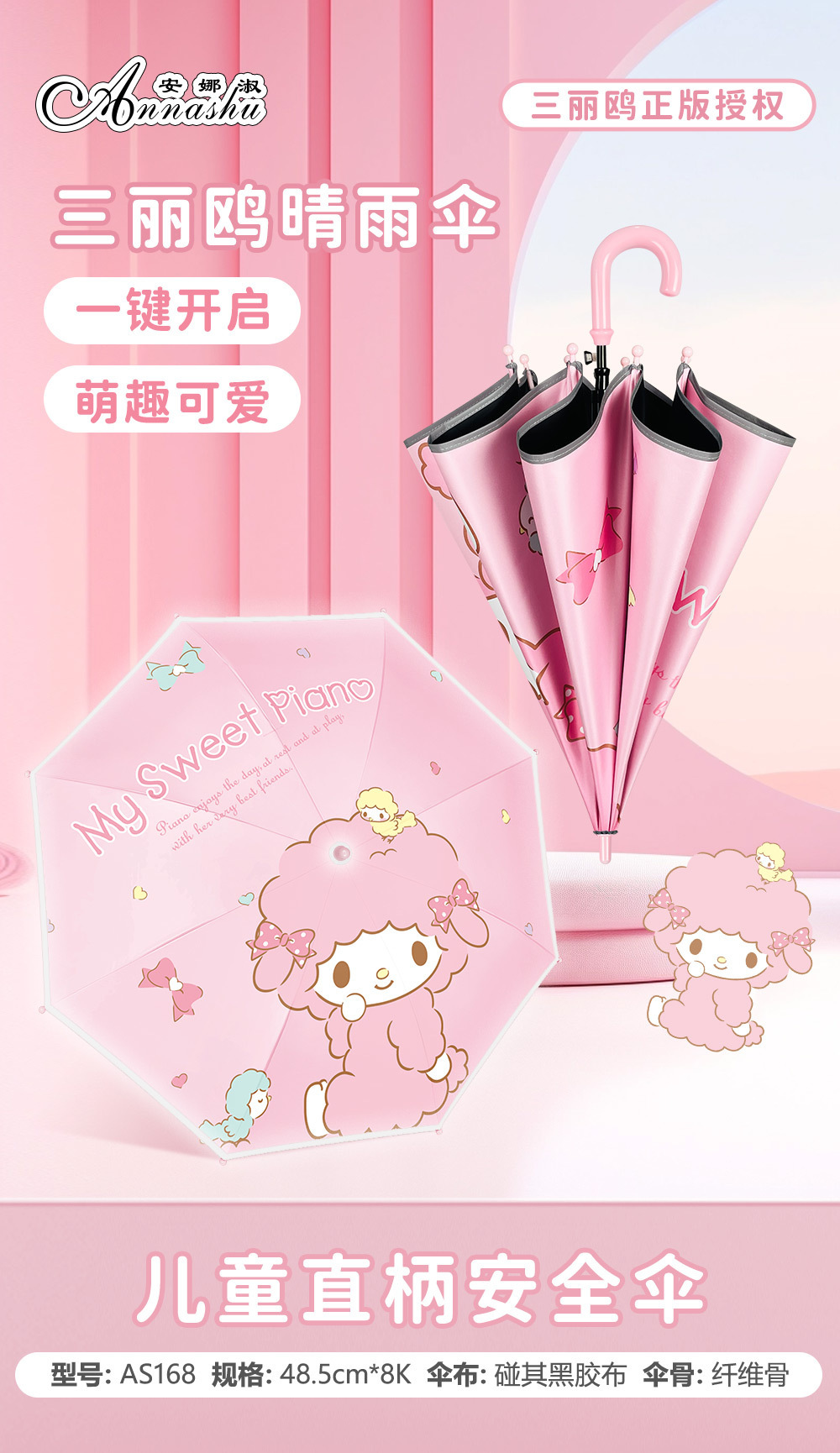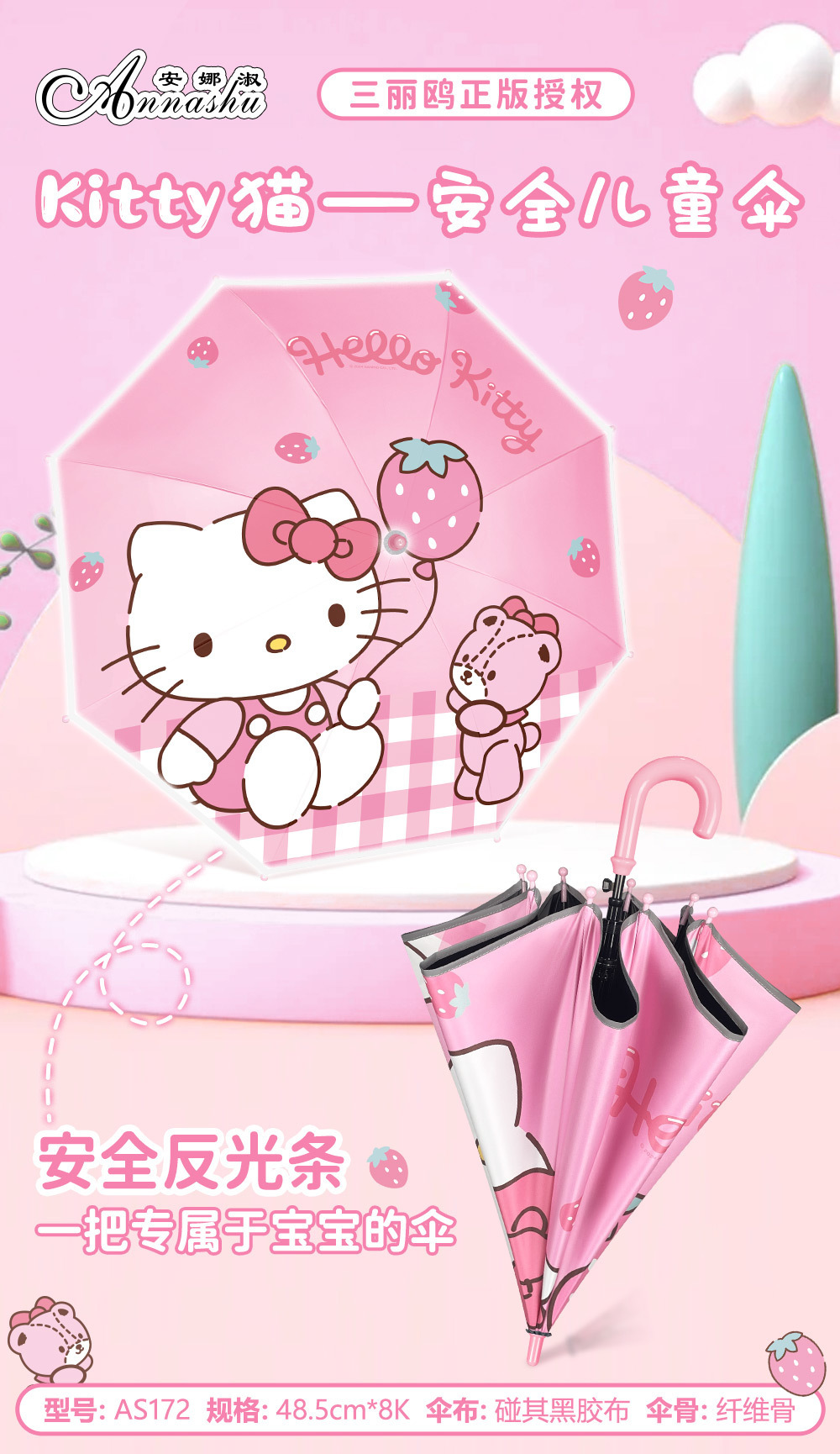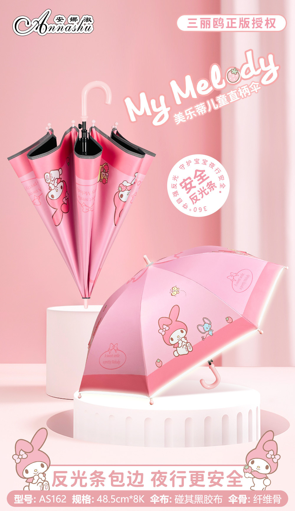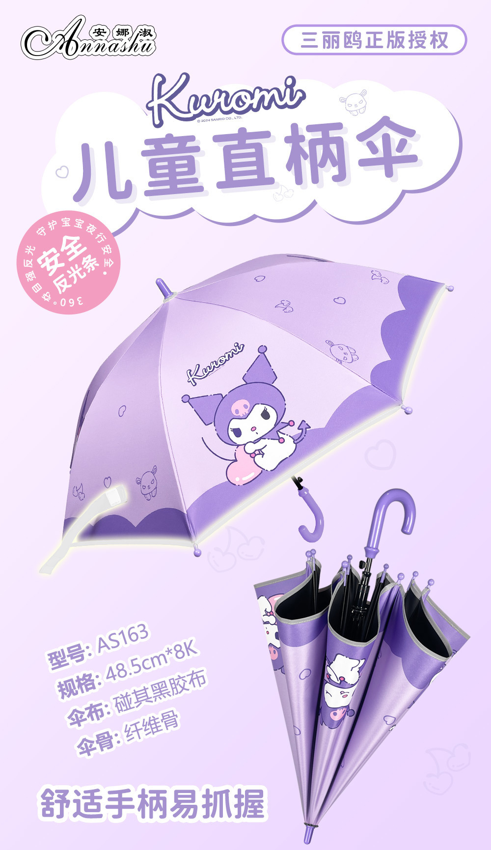 정품 산리오 우산 어린이 우산 정품 쿨로미 자동 어린이 반사 스트립 안전 우산