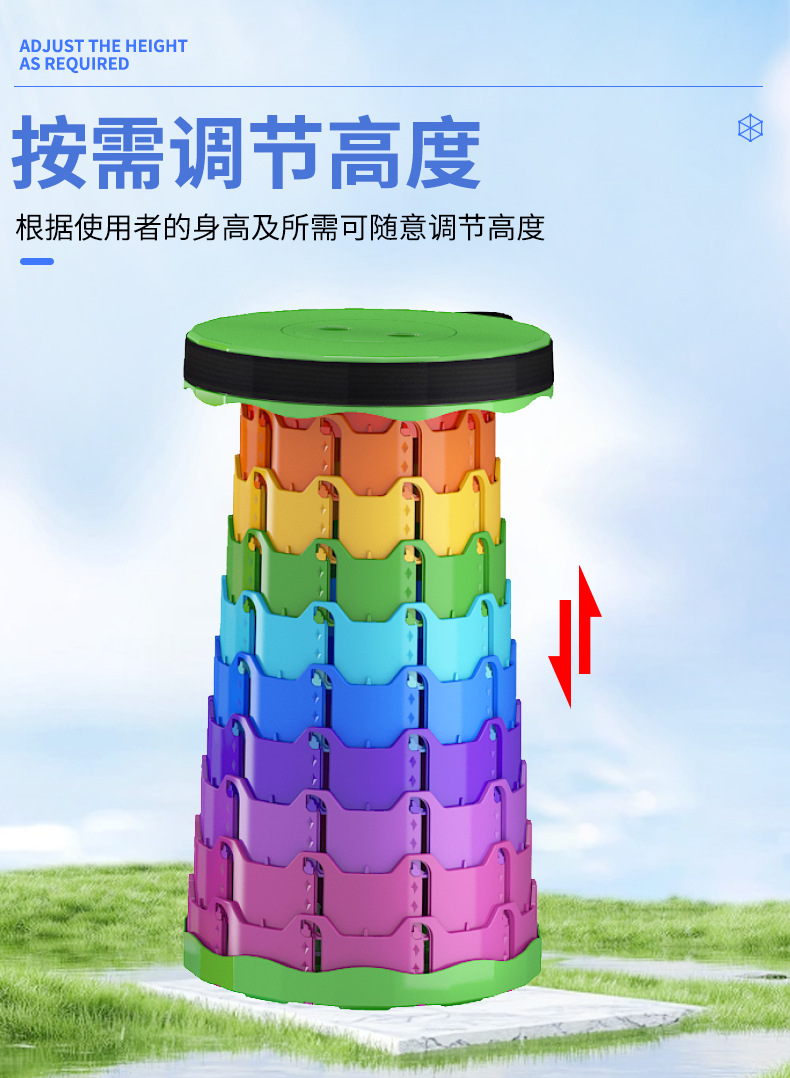 국경 도매 무지개 망원경 의자 야외 휴대용 플라스틱 접이식 의자 조정 가능한 기차 큐 낚시 의자스토어 가기
