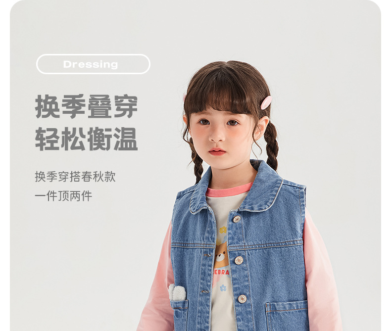 어린이 데님 조끼, 초가을, 중소형 어린이 패션 조끼 탑, 아기 스타일 조끼, 소녀의 새로운 조끼스토어 가기