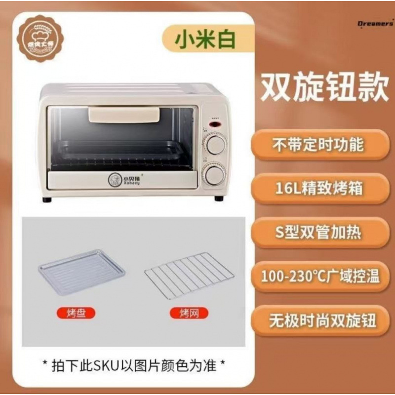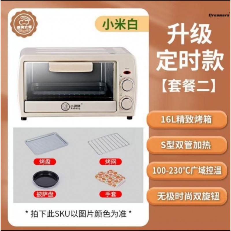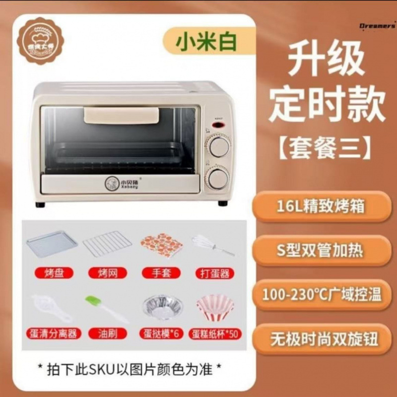• 오븐 모델 16L 황백색 이중 회전 타이머 온도 조절 모델 + 패키지 3개