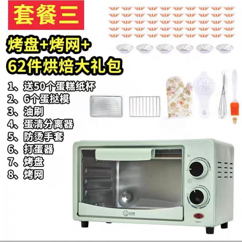 • 오븐 모델 12L 녹색 타이머 모델 + 패키지 3개 사진의 내용을 보면 식사를 데울 수 있습니다.