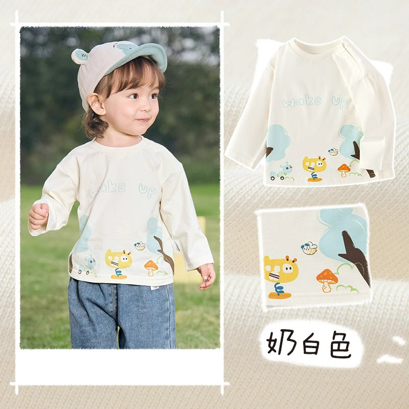 어린이 착용 아기베이스 셔츠 아기 긴 소매 티셔츠 소녀 소년 2025 새로운 어린이 탑 귀여운스토어 가기