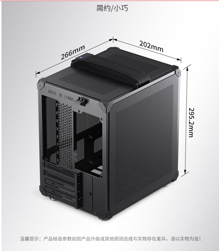 乔思伯(JONSBO)C6 Handle版黑色 MATX机箱(可调节便携提手/Type-c/ATX电源/≤75mm散热器/200-255mm显卡)