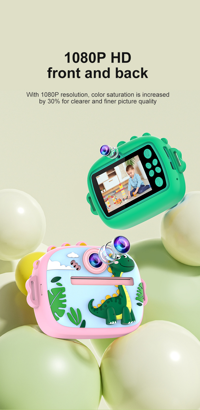 • 만화 공룡 폴라로이드 - 핑크 - 전면 및 후면 듀얼 카메라 - 메모리 카드 없음