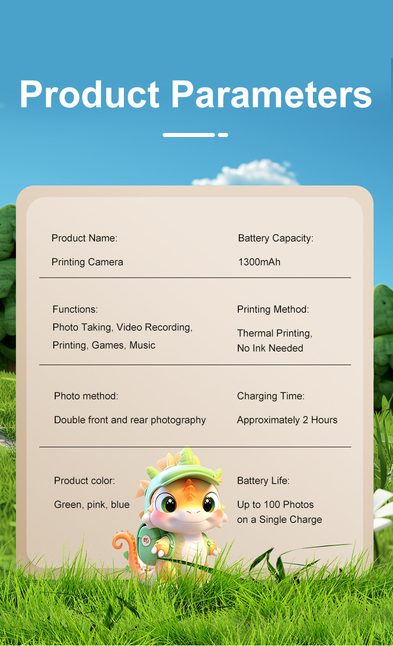 • G11 공룡 프린터 - 녹색 - 전면 및 후면 듀얼 카메라 - 메모리 카드 없음