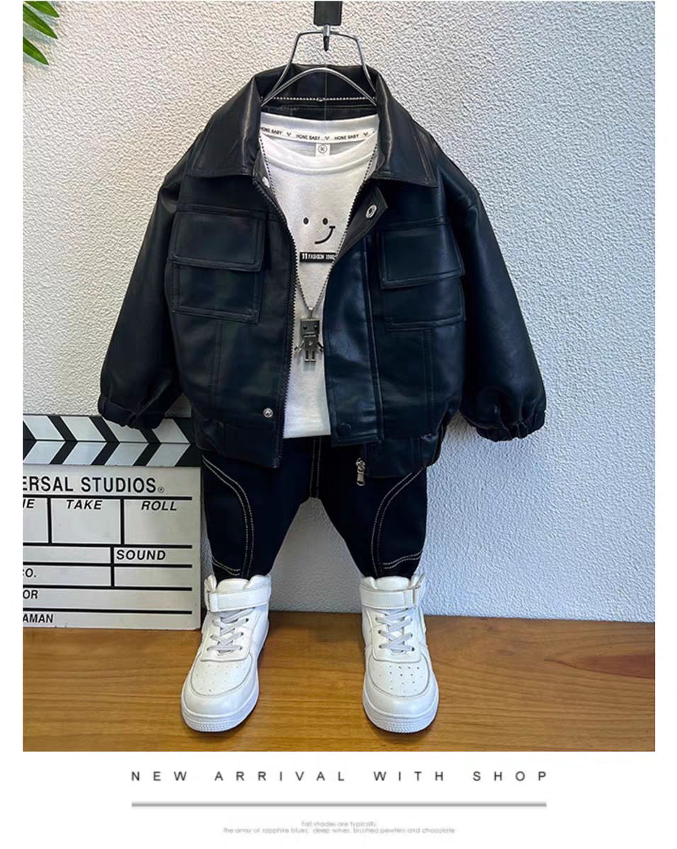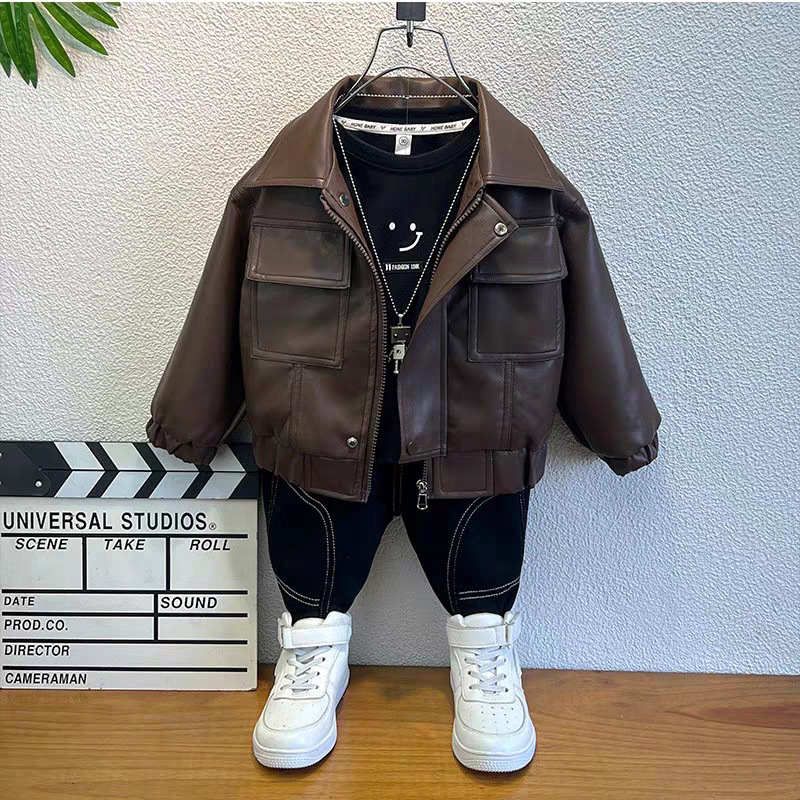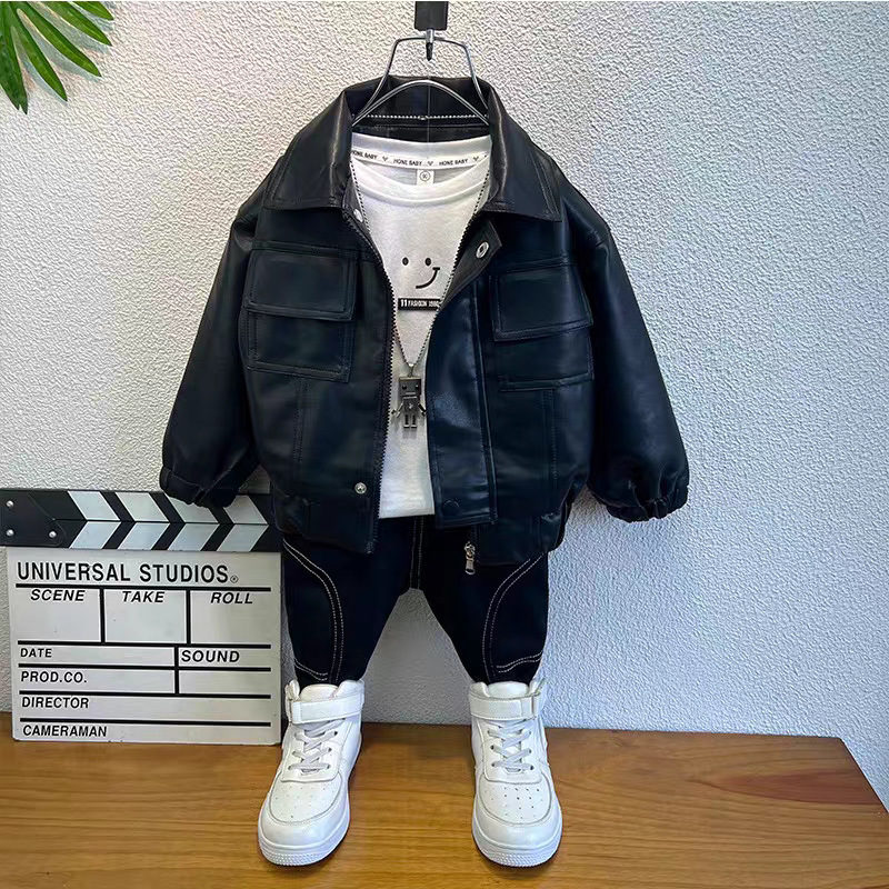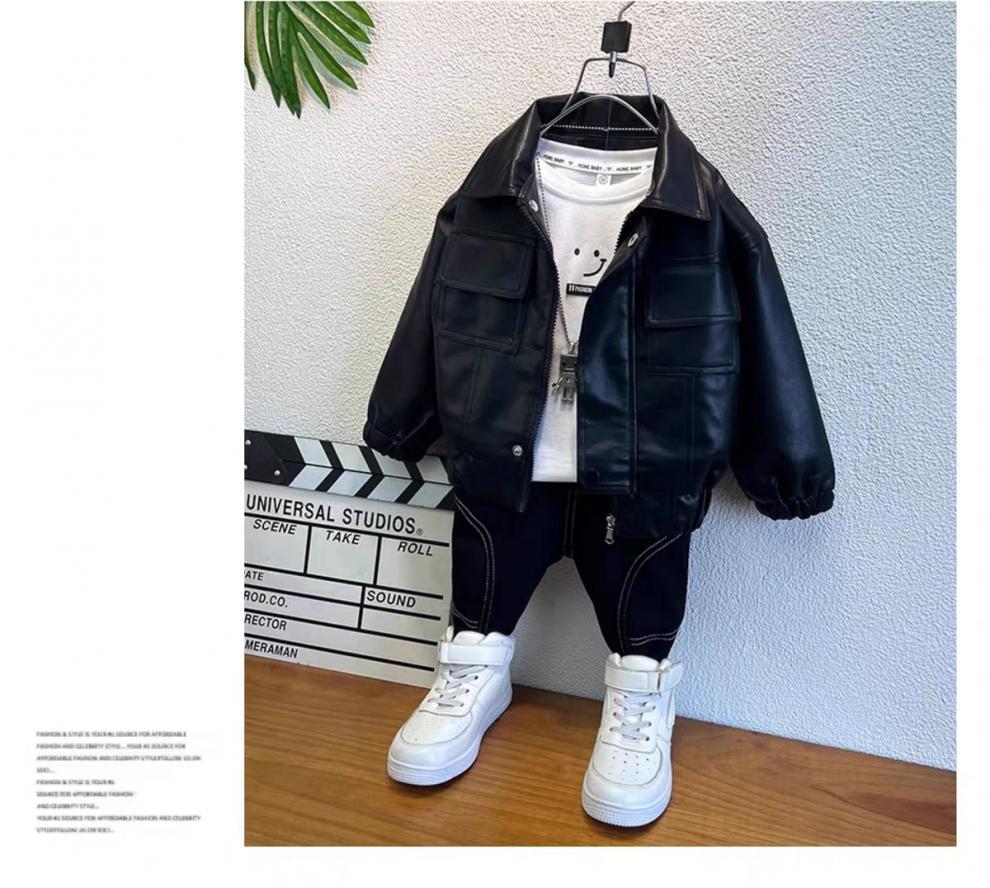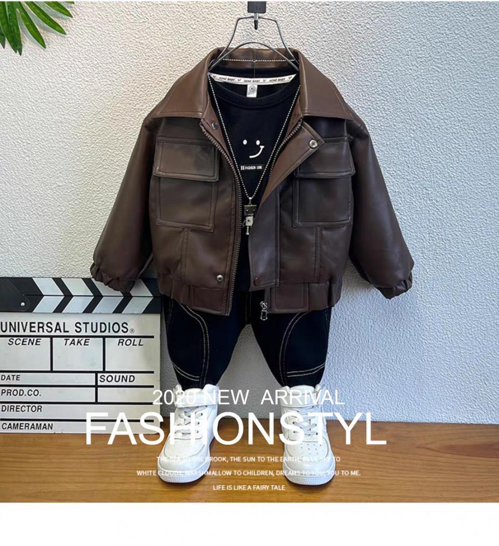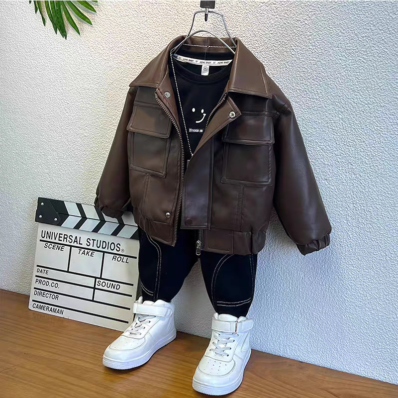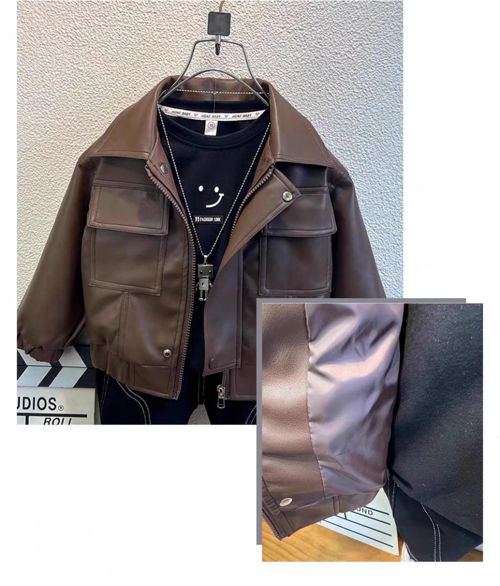 소년 가죽 자켓 2025 새로운 한국 스타일 어린이 잘 생긴 거리 재킷 탑 어린이 봄웨어 아동복 트렌디