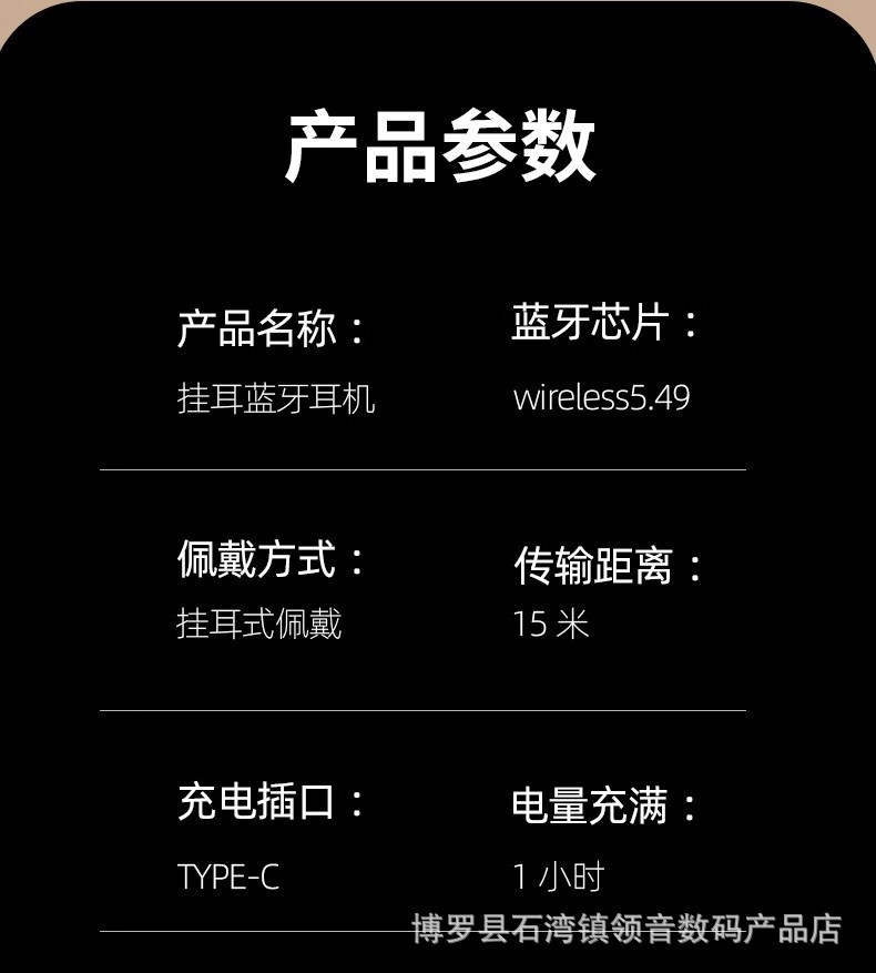 국경 간 새로운 베를린 음성 무선 귀 매달려 블루투스 헤드셋 5.4 모션 노이즈 감소 귀 큰 전원 배치