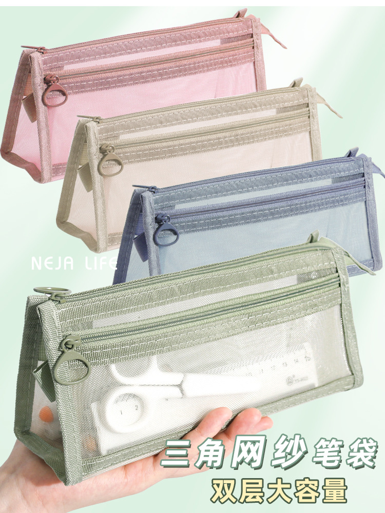 시험용 이중 입체 투명 메쉬 연필 가방, 대용량 문구 가방, 학생용 특수 연필 가방, 문구 상자