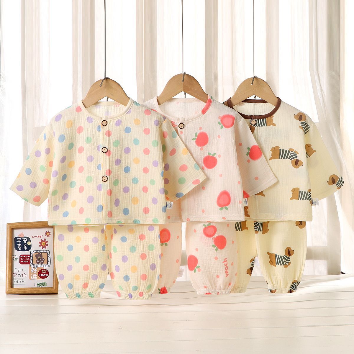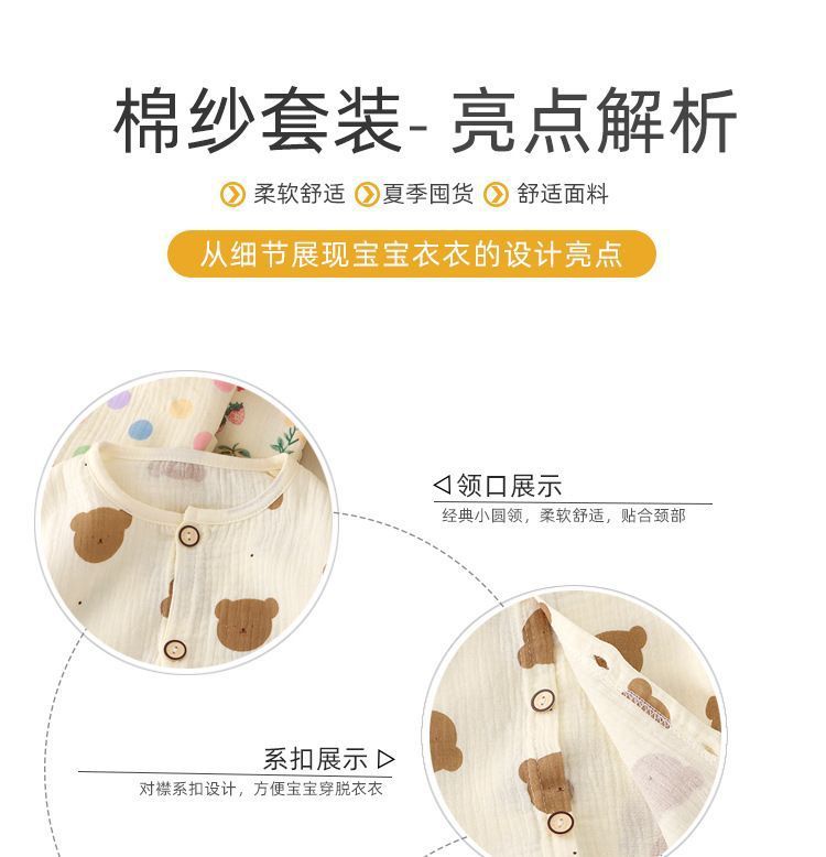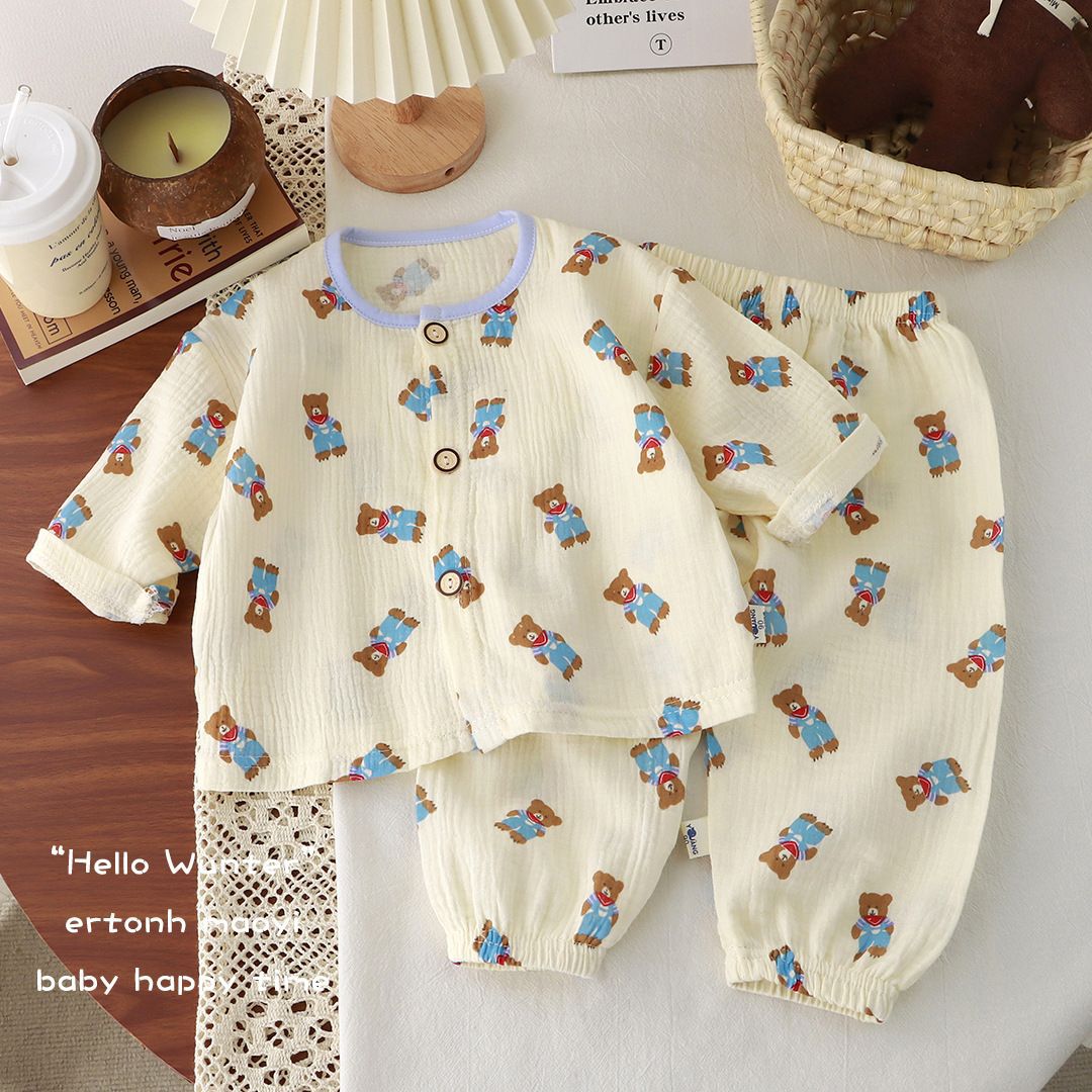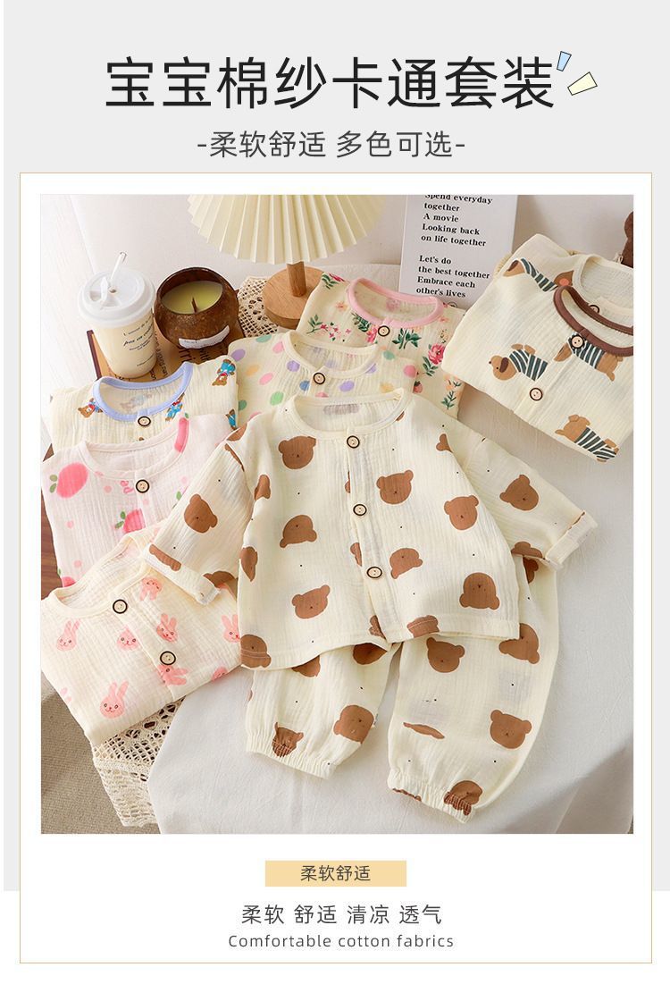 어린이 면사 새 잠옷 소녀 여름 얇은 더블 거즈 홈 옷 순면 아기 에어컨 세트스토어 가기