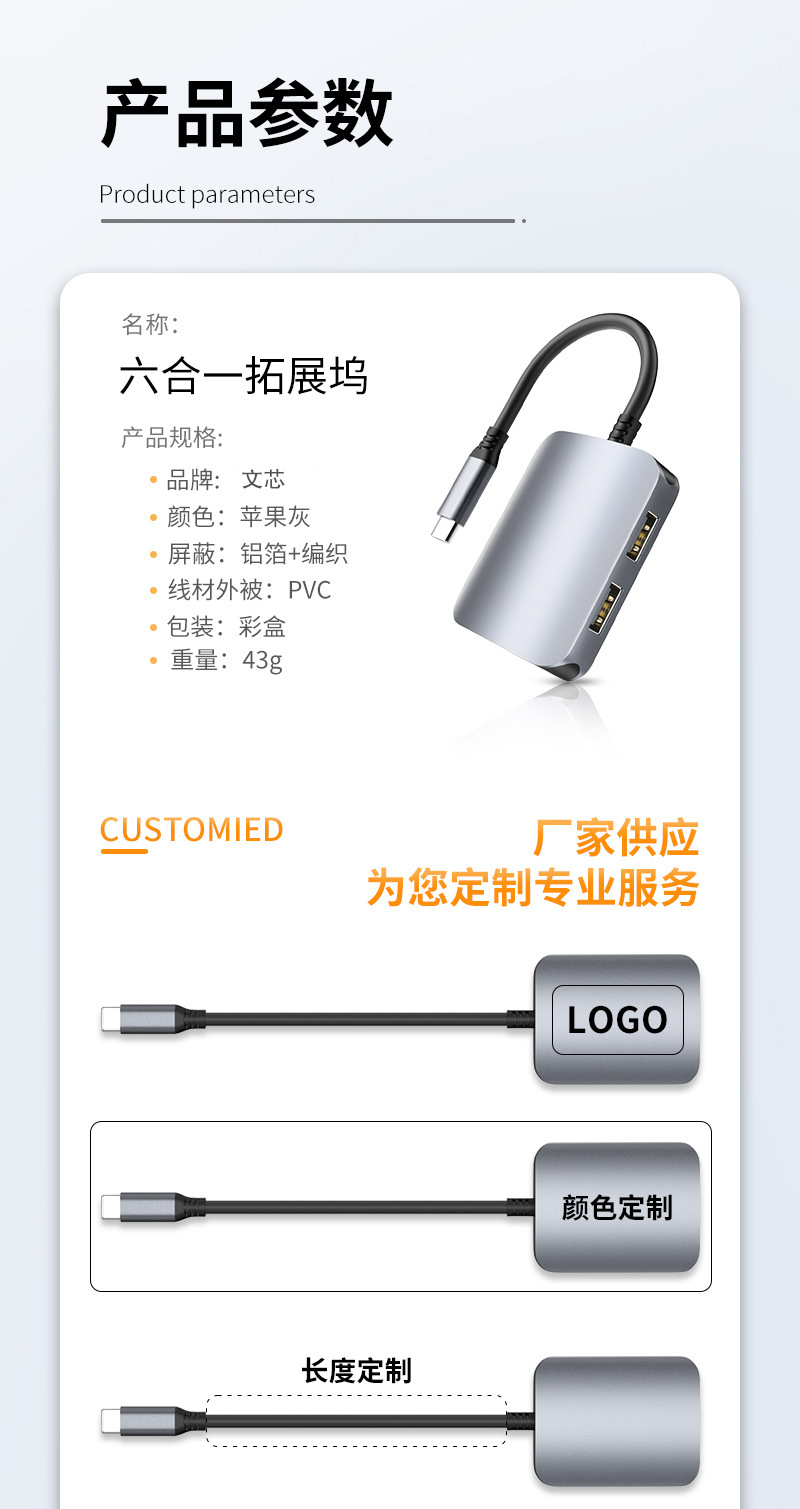 6 대 1 타입 확장 도크 컴퓨터 HDMI HD 4K 허브 3.0 전원 공급 장치가있는 일대일 확장기스토어 가기