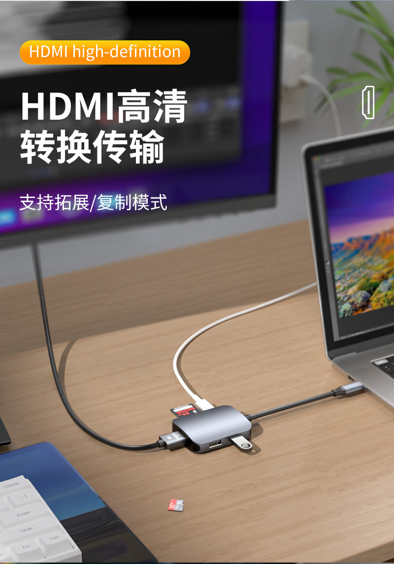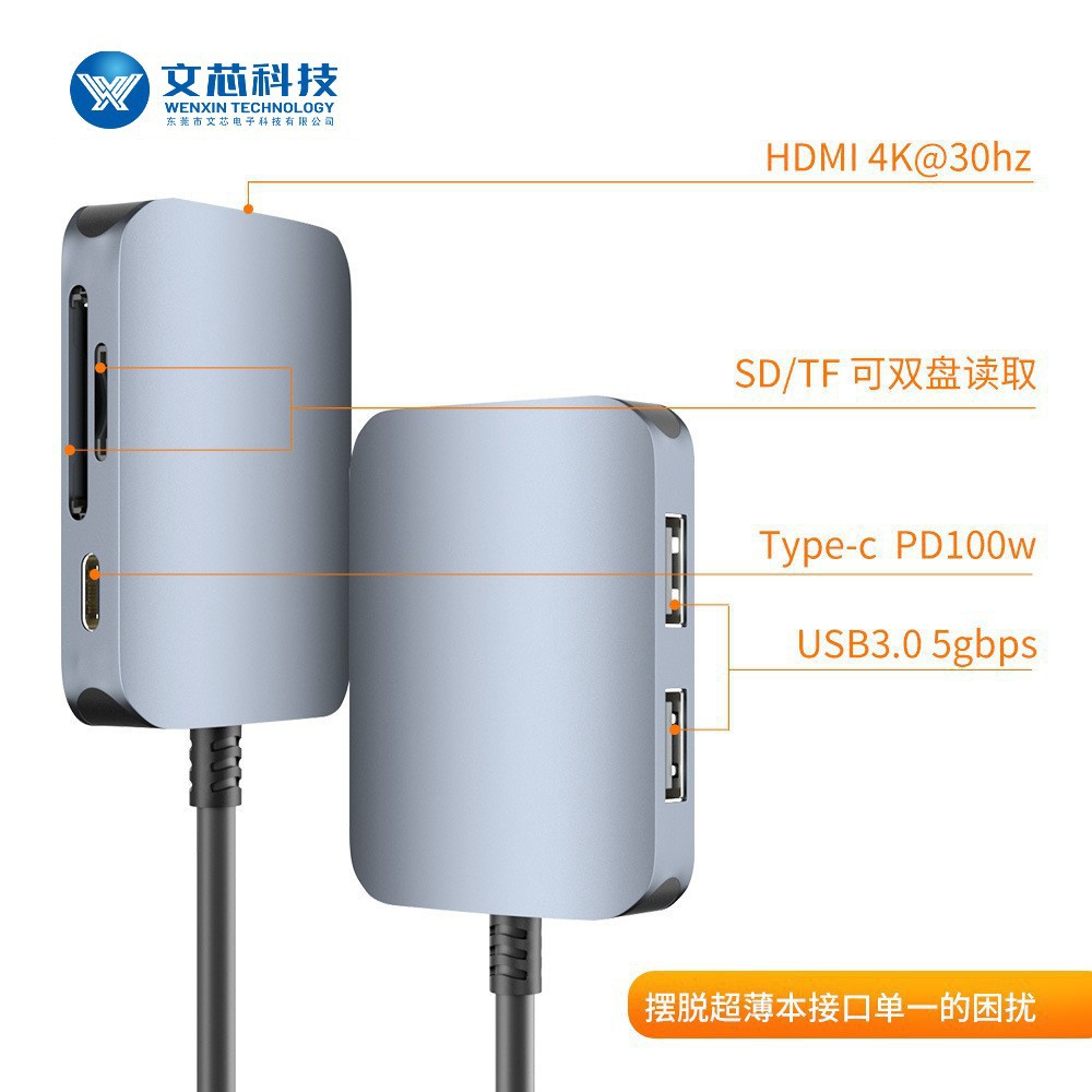 6 대 1 타입 확장 도크 컴퓨터 HDMI HD 4K 허브 3.0 전원 공급 장치가있는 일대일 확장기