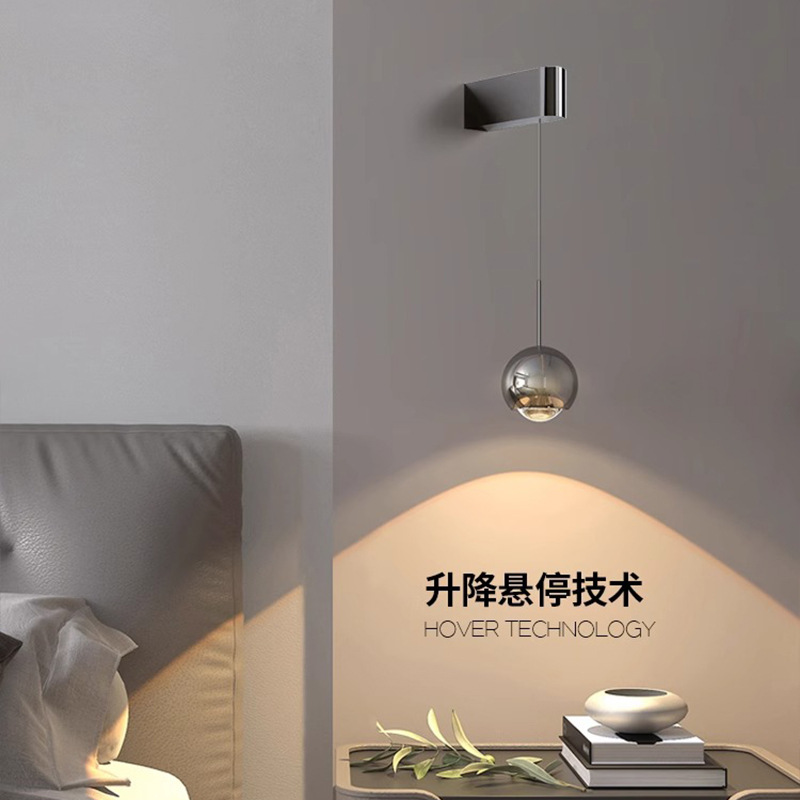 리프트식 서스펜션 침실 벽 램프 이탈리아 스타일 가벼운 럭셔리 미니멀리스트 핸드 스윕 유도 스마트 힐스 벽 램프