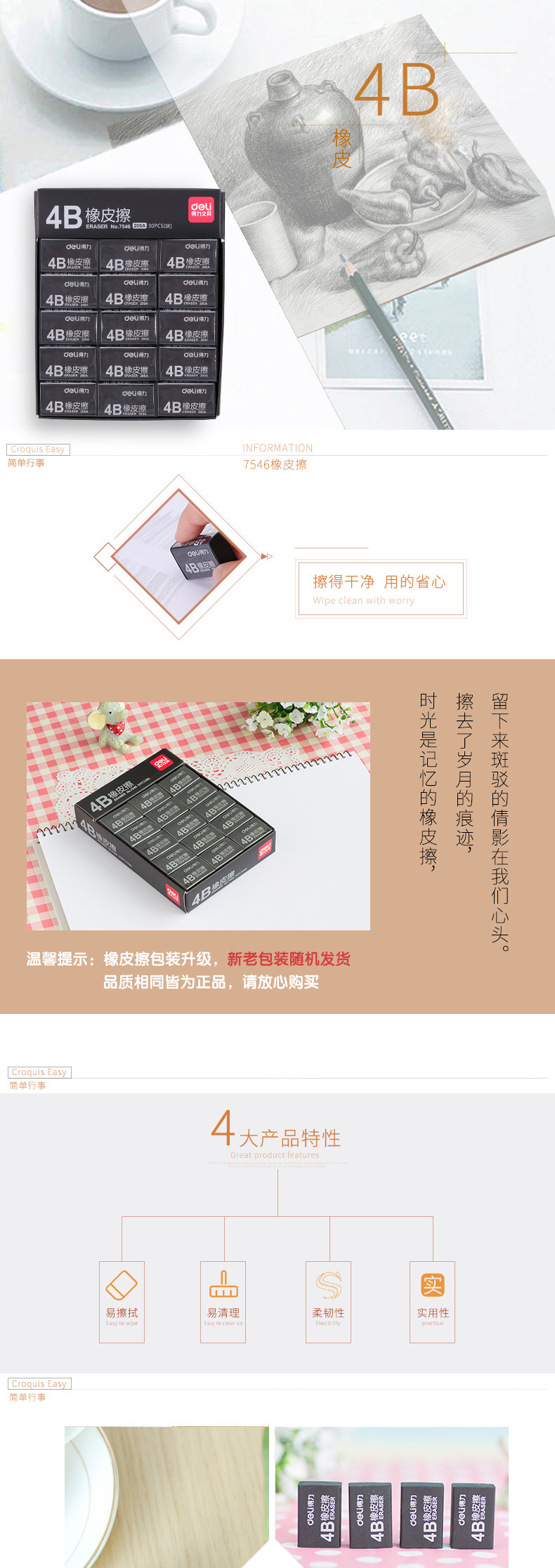 Deli 7546 지우개 지우개 지우개를 자국을 남기지 않고 깨끗한 스트립으로 닦아 줄 수 있습니다.스토어 가기