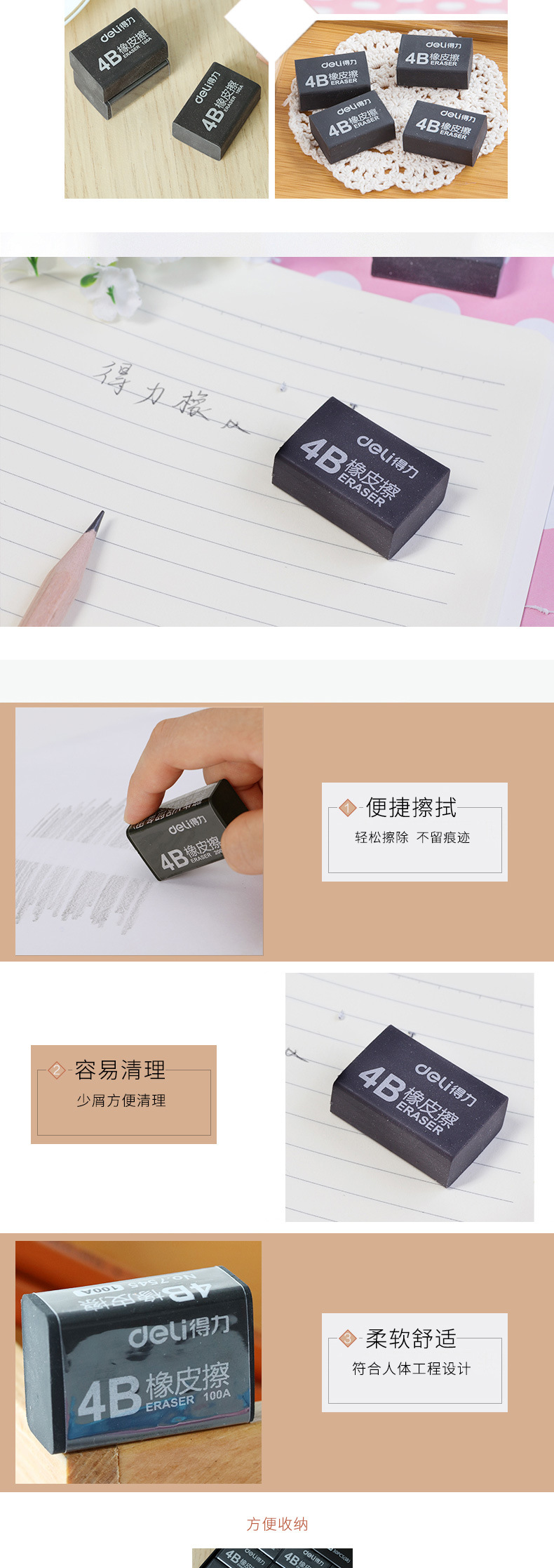 Deli 7546 지우개 지우개 지우개를 자국을 남기지 않고 깨끗한 스트립으로 닦아 줄 수 있습니다.