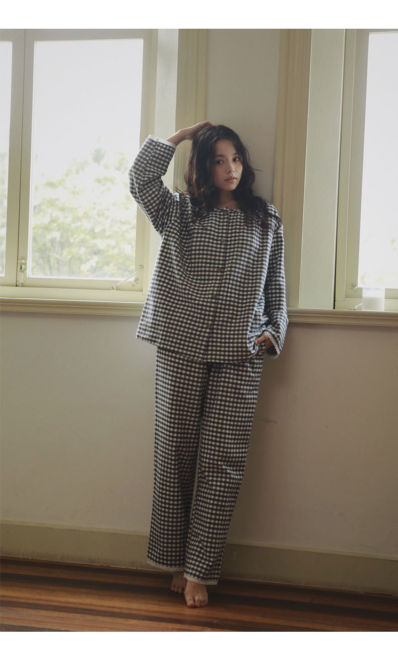 특가- 야수 잠옷 여성용 가을 겨울 기모 누빔 남성용 순면 긴팔 홈웨어 커플 세트 대형 사이즈스토어 가기