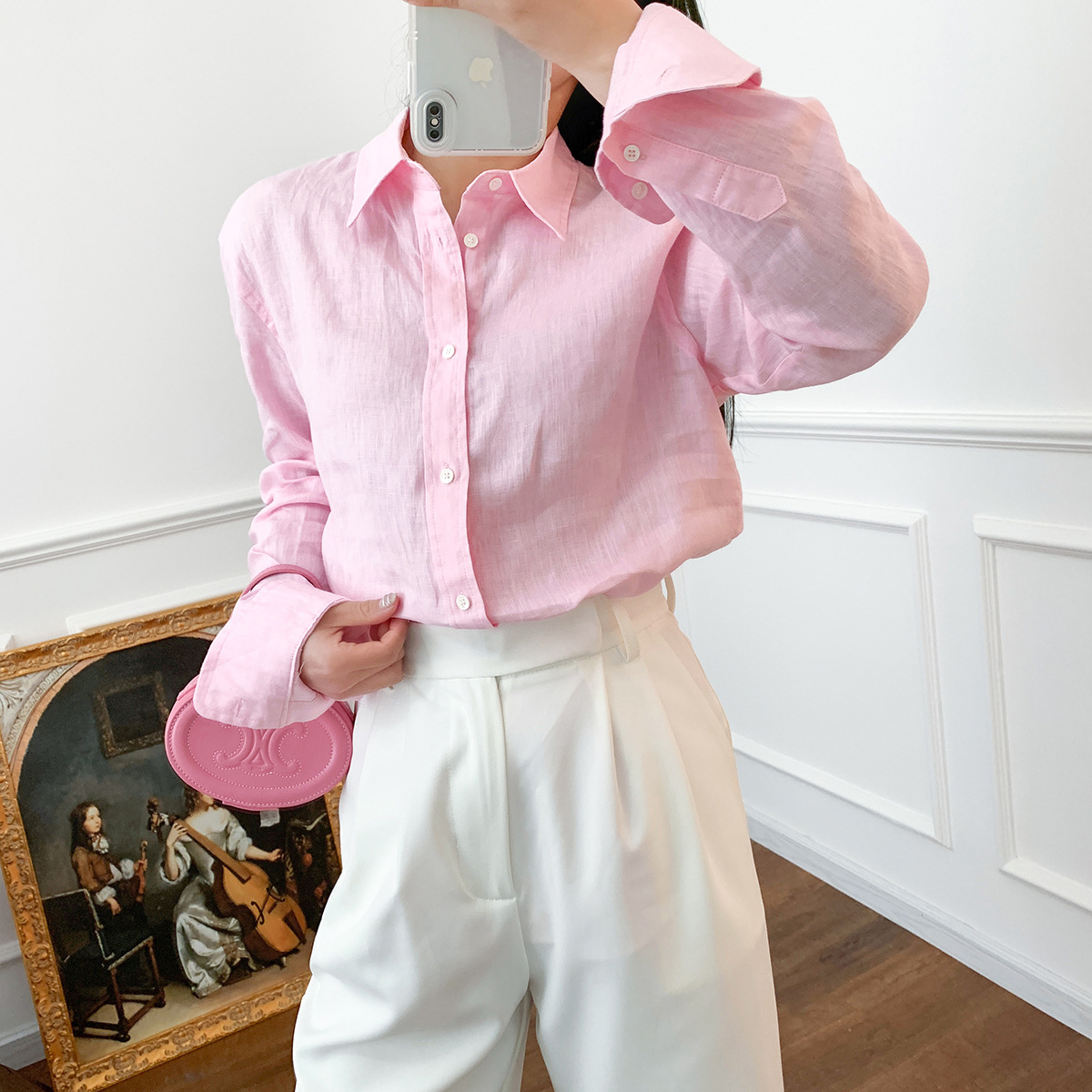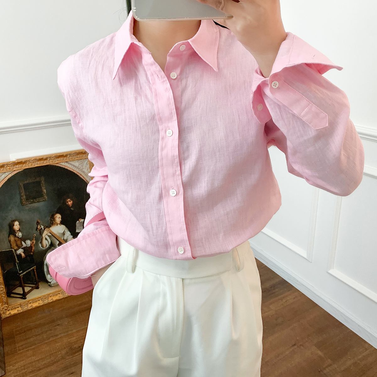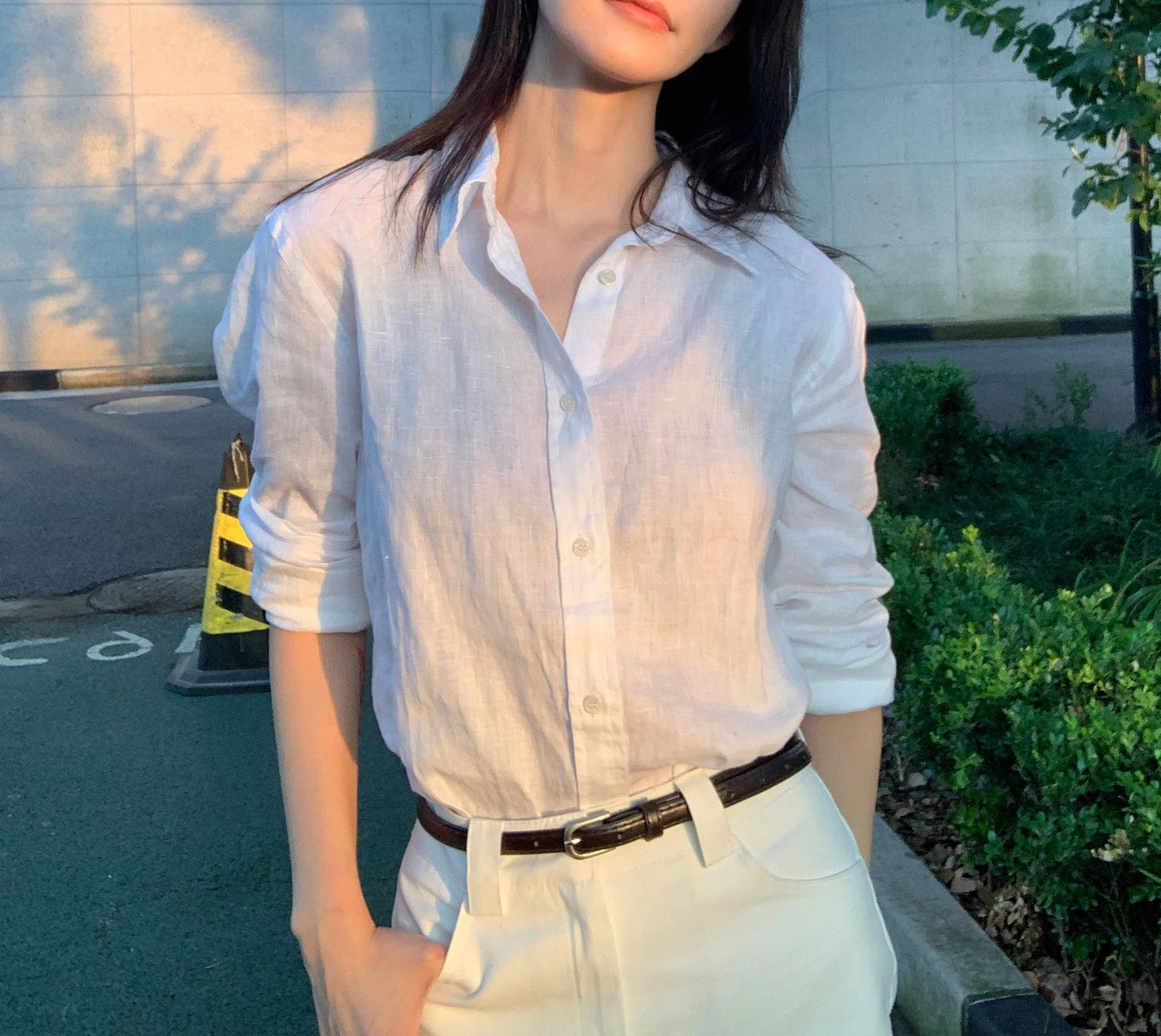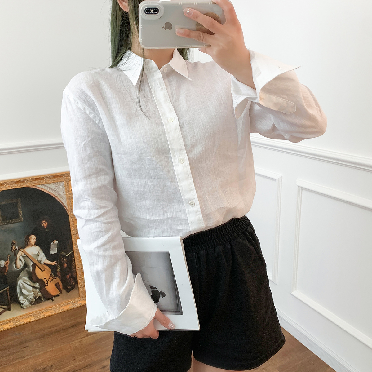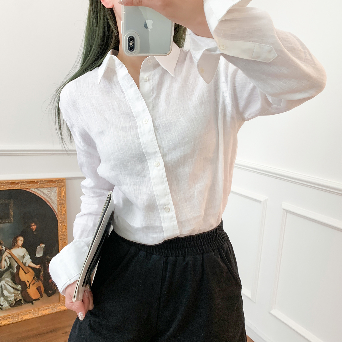 25 봄 여름 포니 자수 셔츠 클래식 스타일 린넨 긴팔 여성 말 로고 화이트 셔츠 RL13453