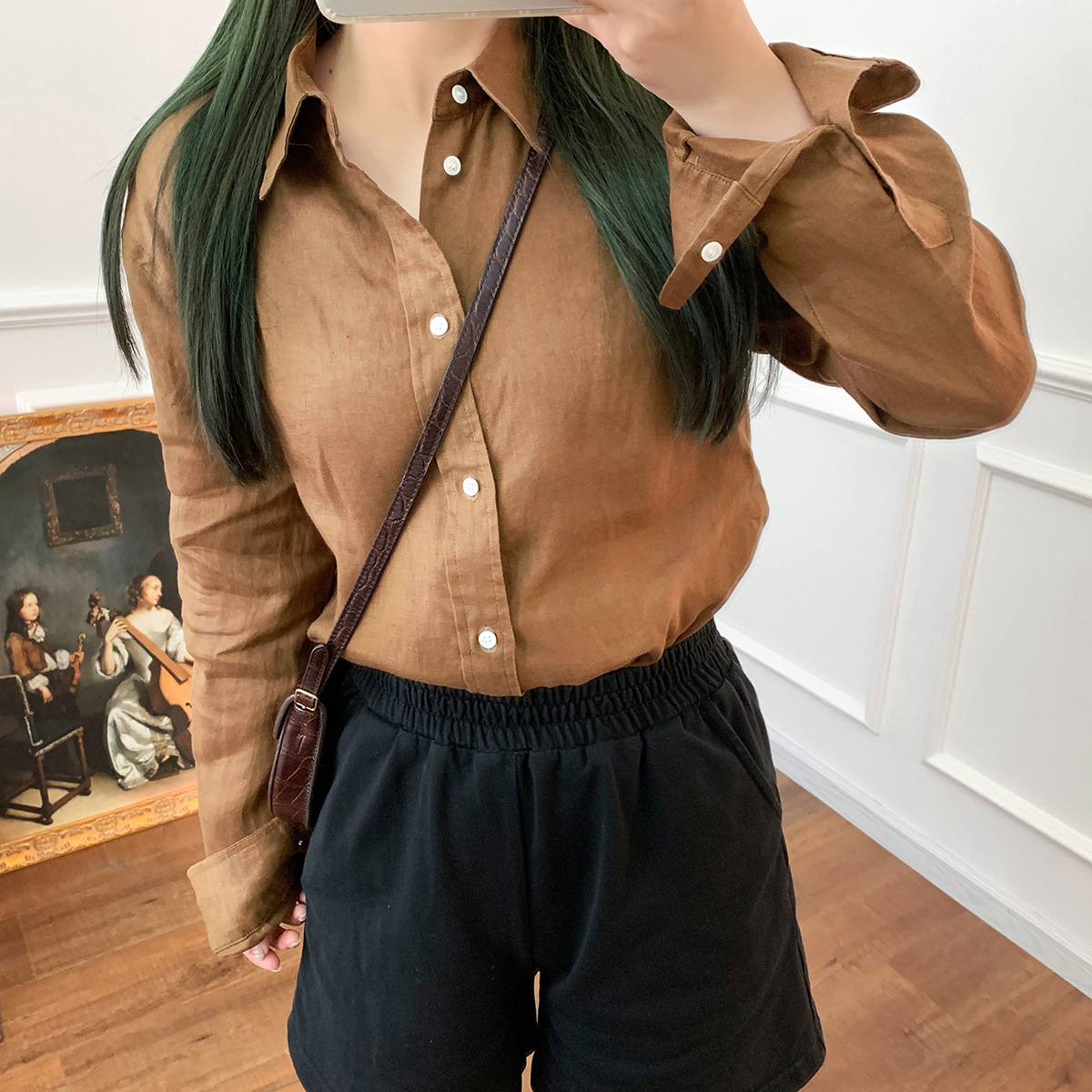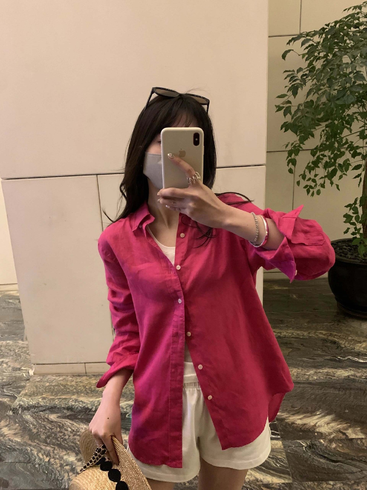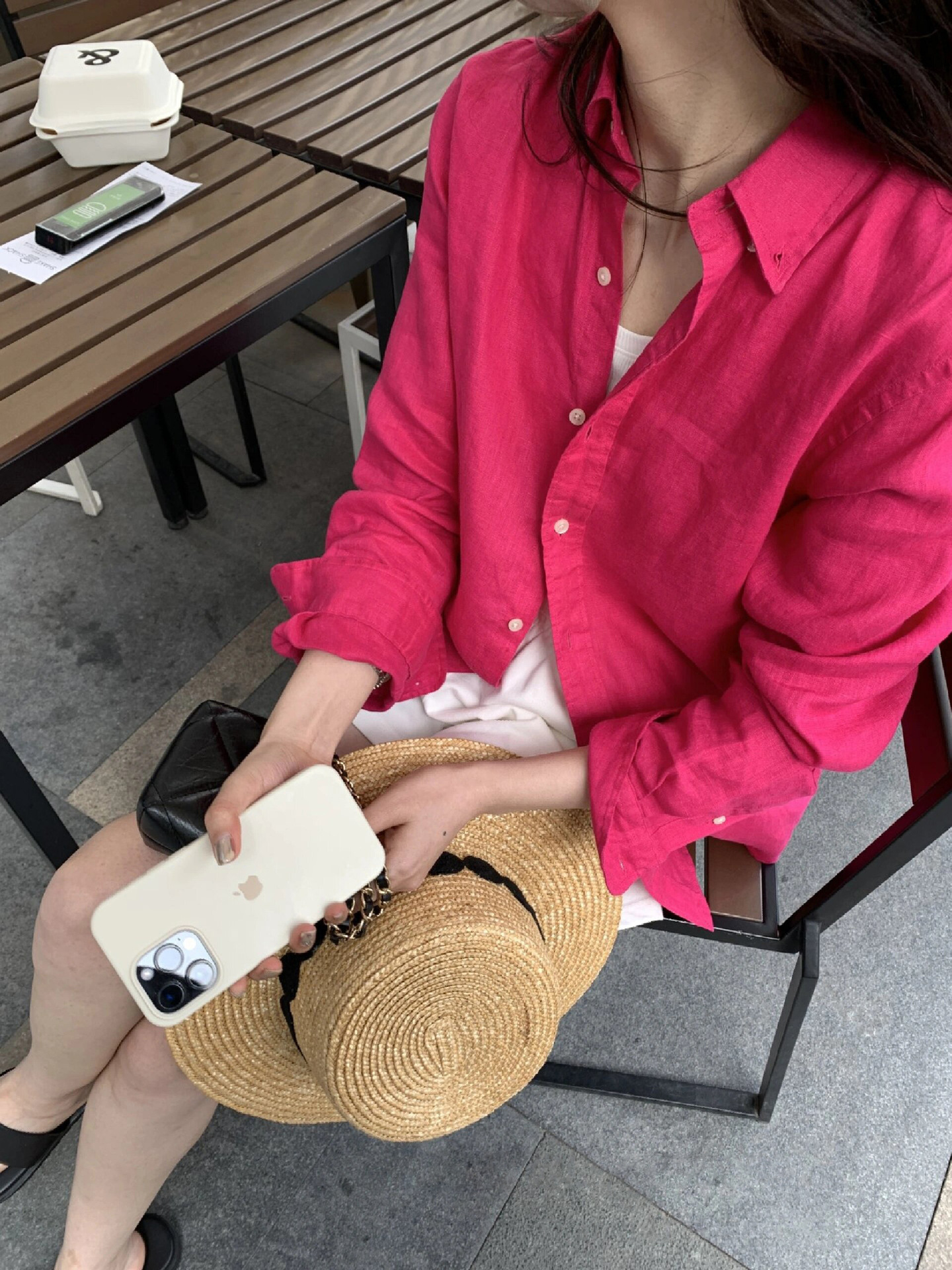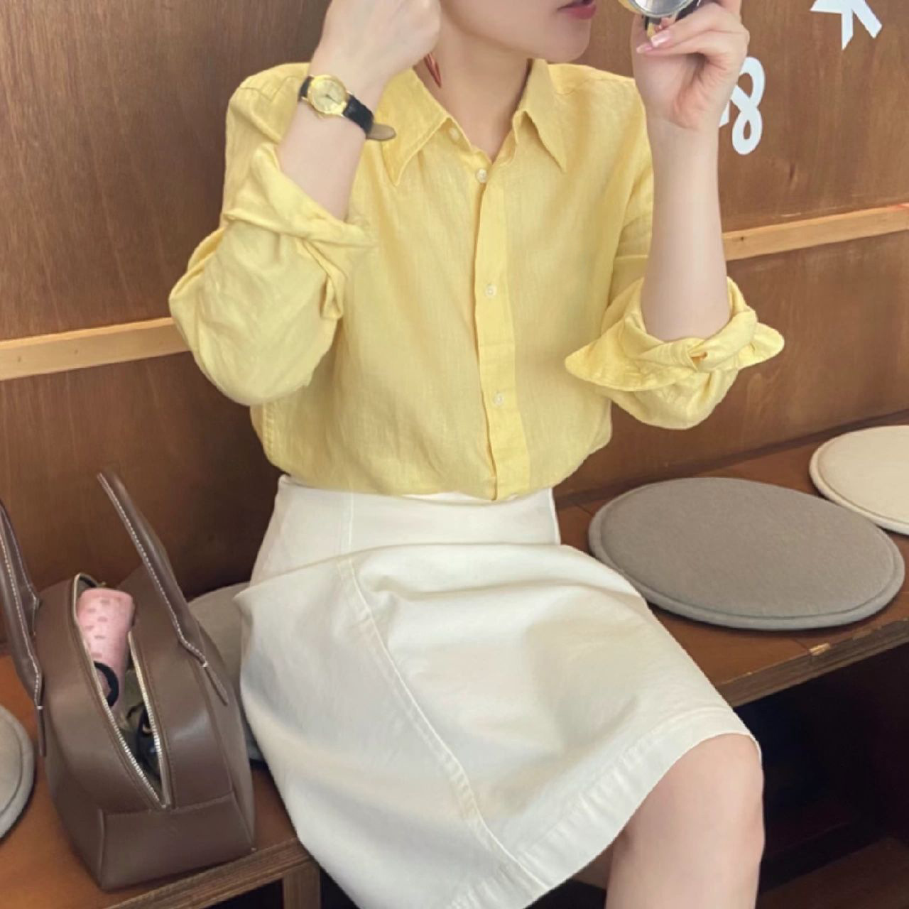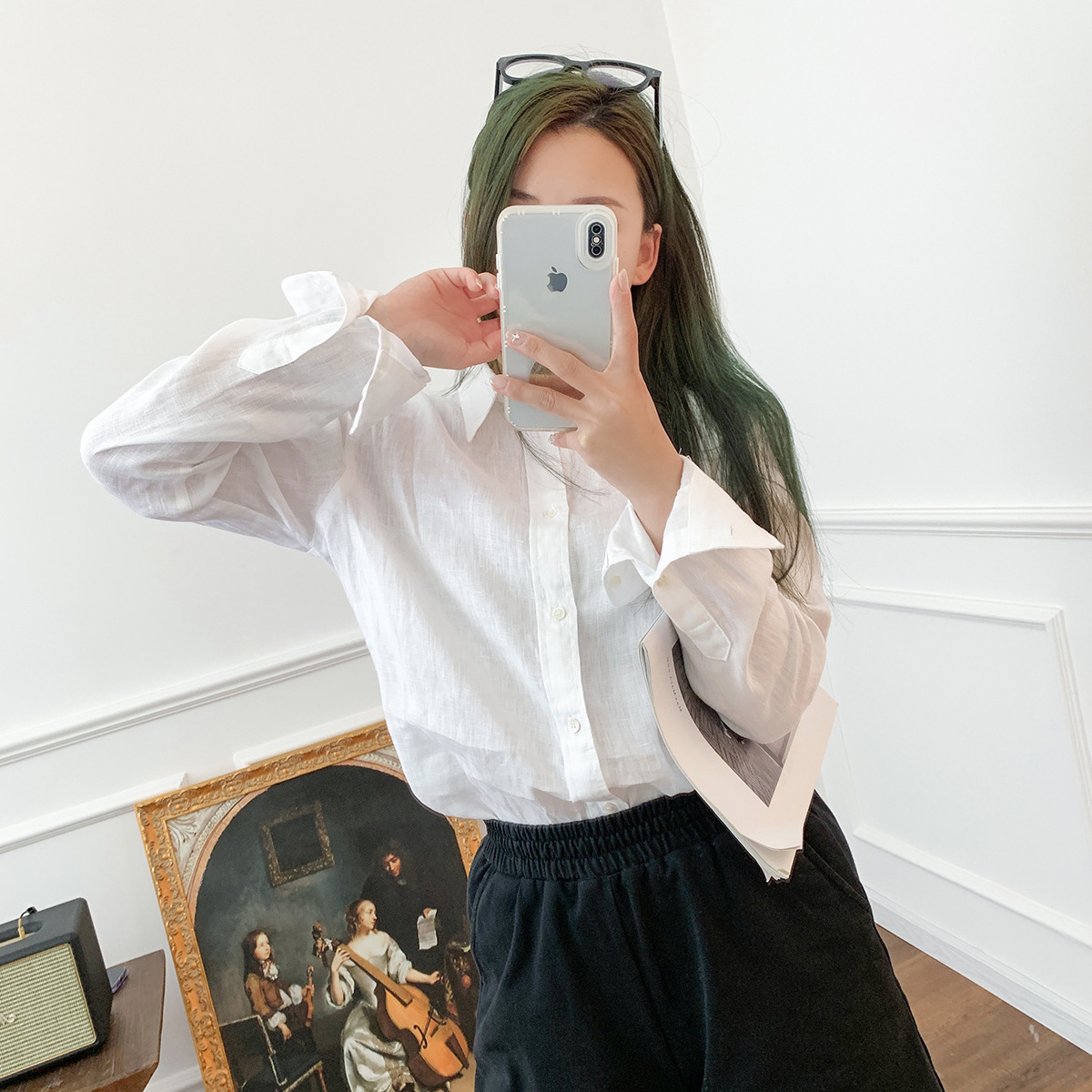 25 봄 여름 포니 자수 셔츠 클래식 스타일 린넨 긴팔 여성 말 로고 화이트 셔츠 RL13453