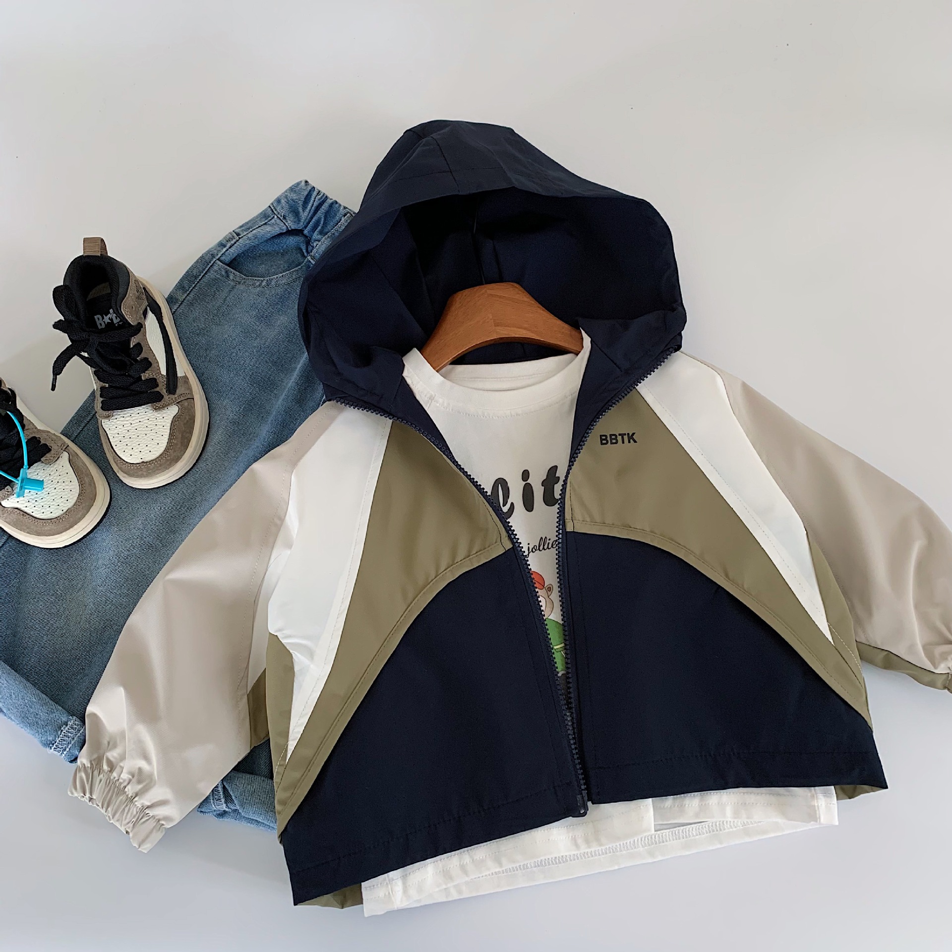 Maibao 아동복 2025 가을 신작 아동 코트 소년 소녀 컬러 블록 후드 봄, 가을 아기 옷 유행스토어 가기
