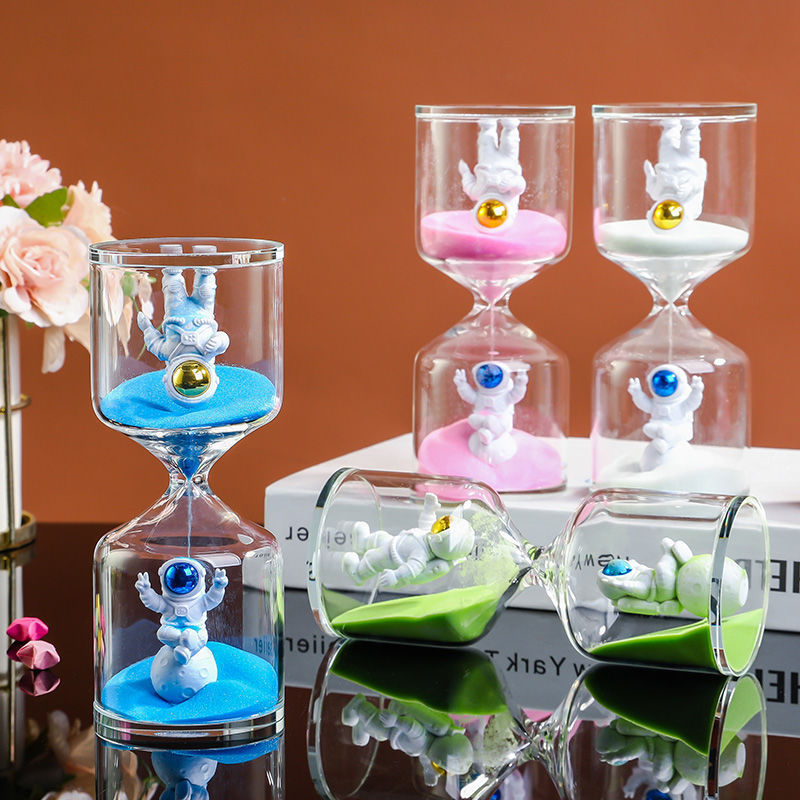 모래 시계 우주 비행사 장식 모래 시계 타이머 어린이 시간 관리 창조적 인 모래 병 우주 비행사 유약 생일