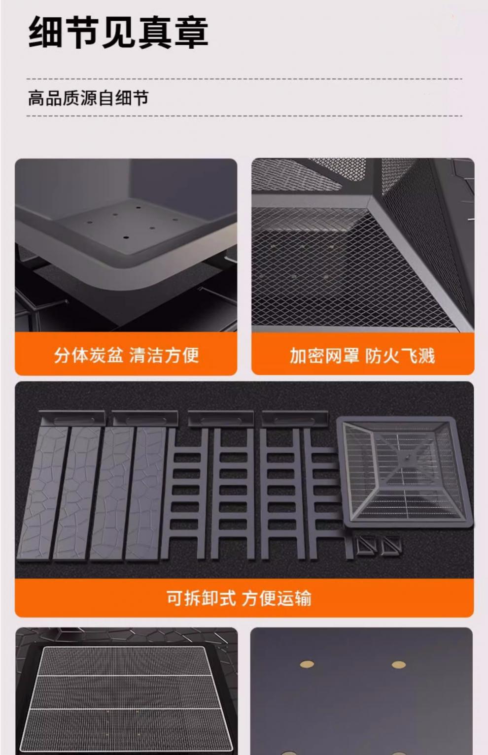 • ♣✡✡✧✧♣강화된 사각형 화로(카본 메쉬, 촘촘한 그릴 메쉬, 메쉬 커버, 먼지 커버, 불 집게) - 무작위로 둘러싸인 패널♣✡✡✧✧♣