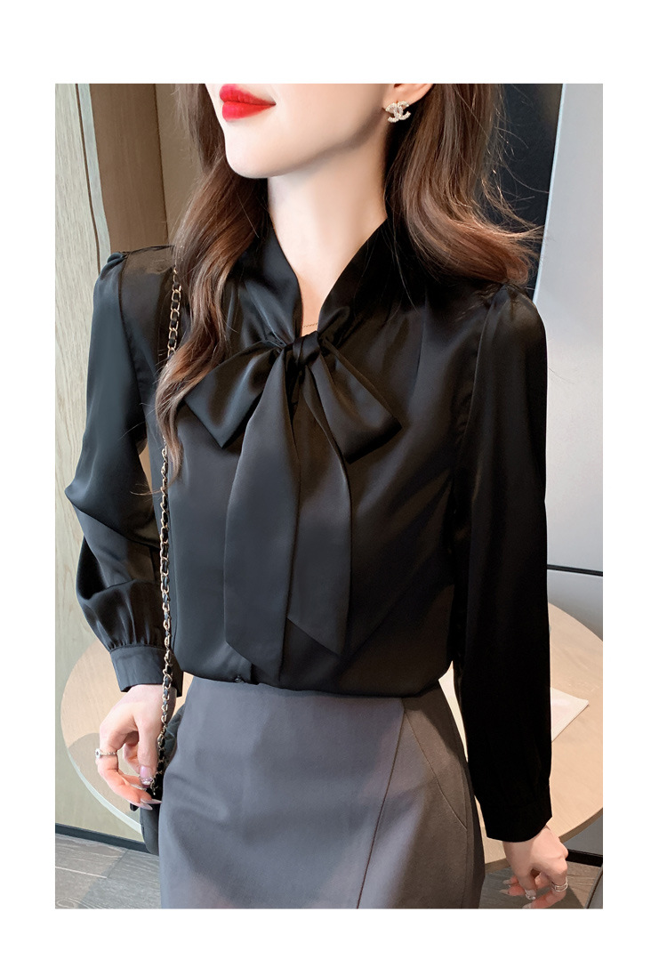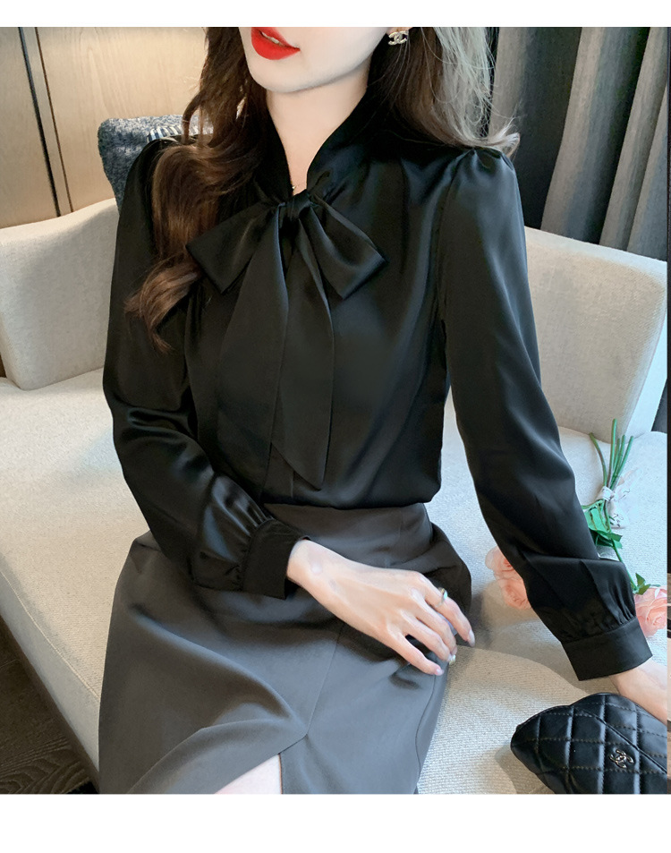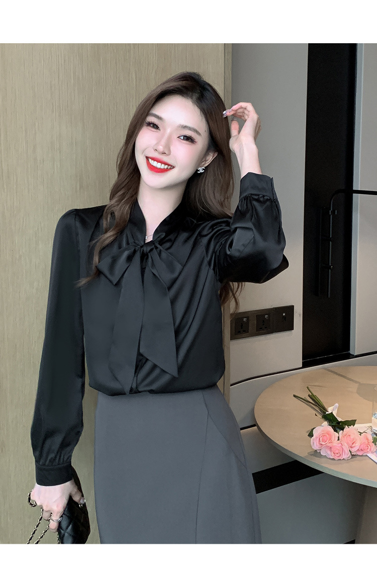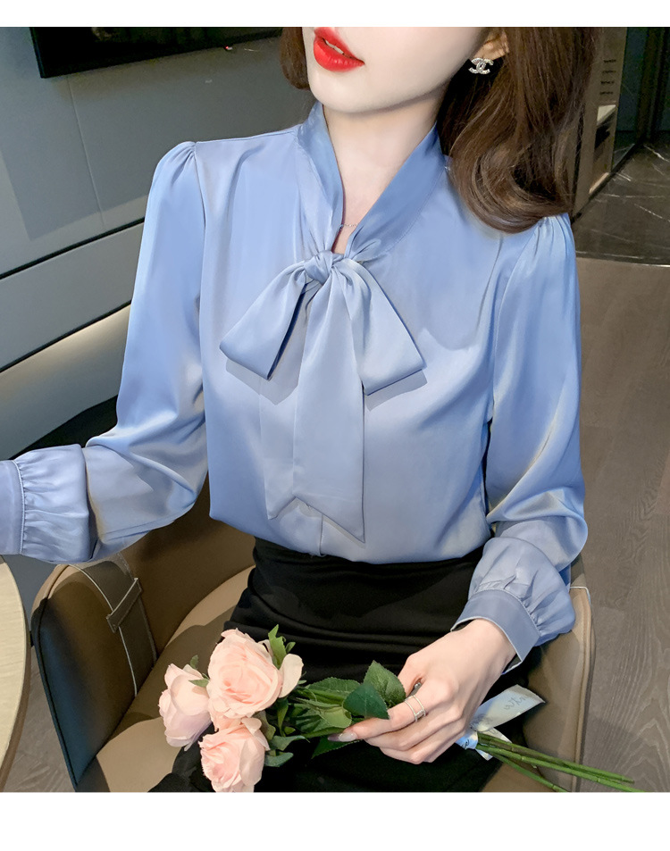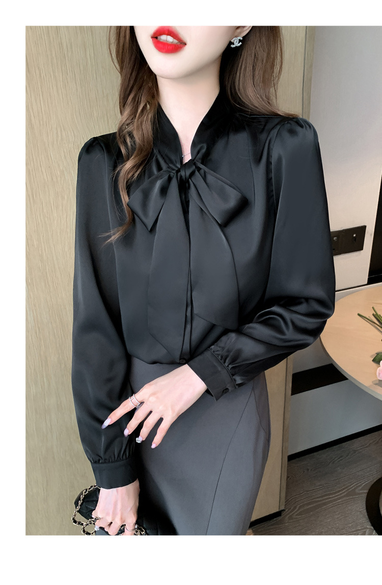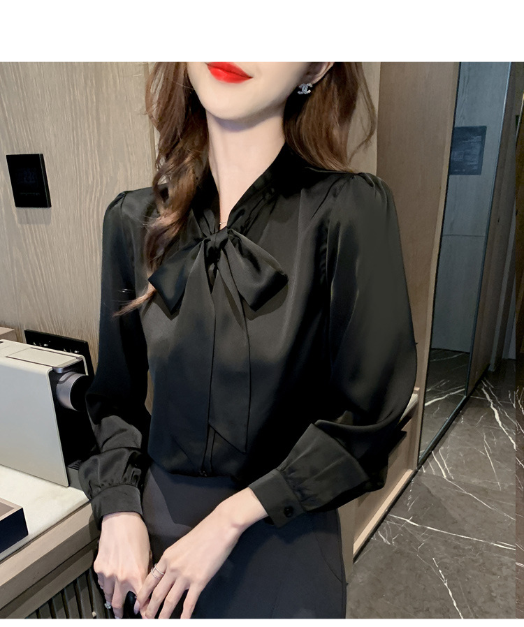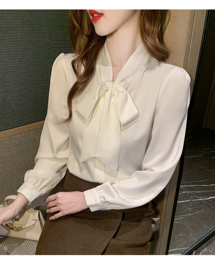 배송 2025 봄 통근 전문 셔츠 긴 소매 리본 쉬폰 셔츠 가을 하이 엔드 감각 내부 탑