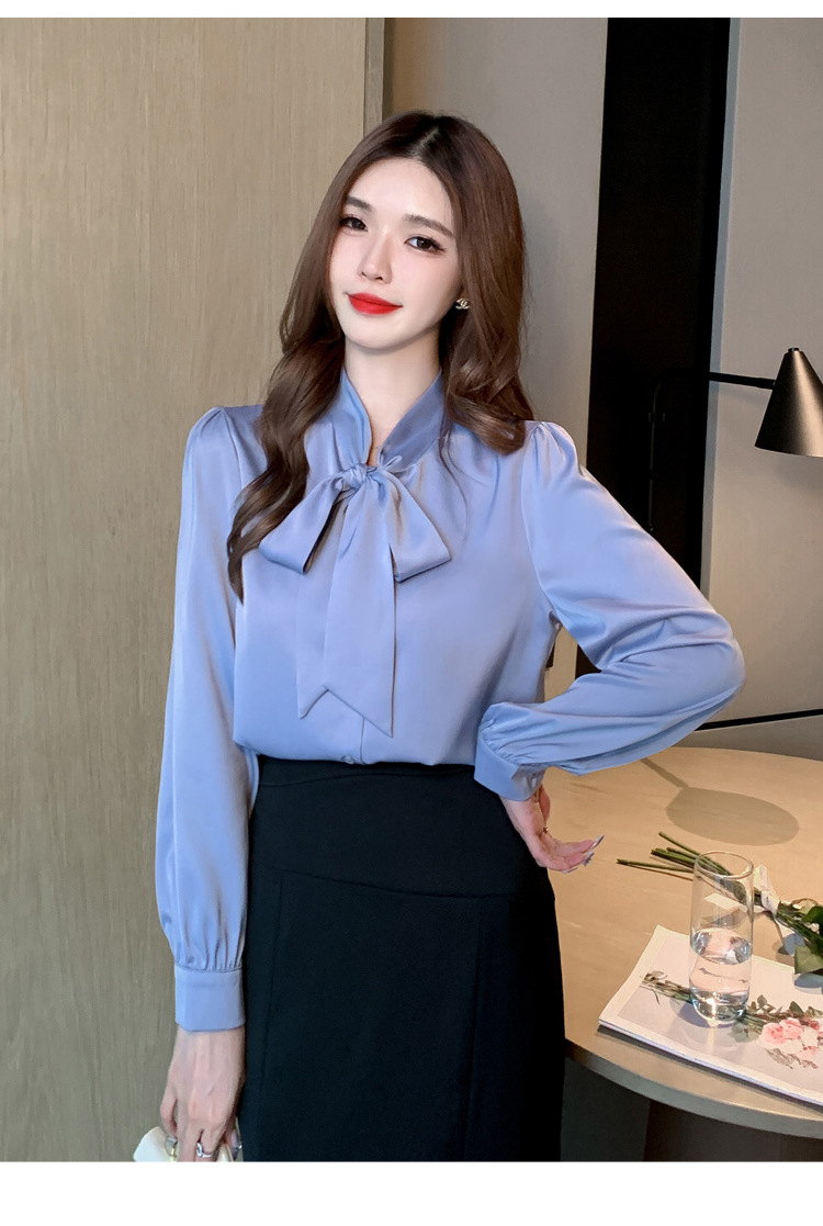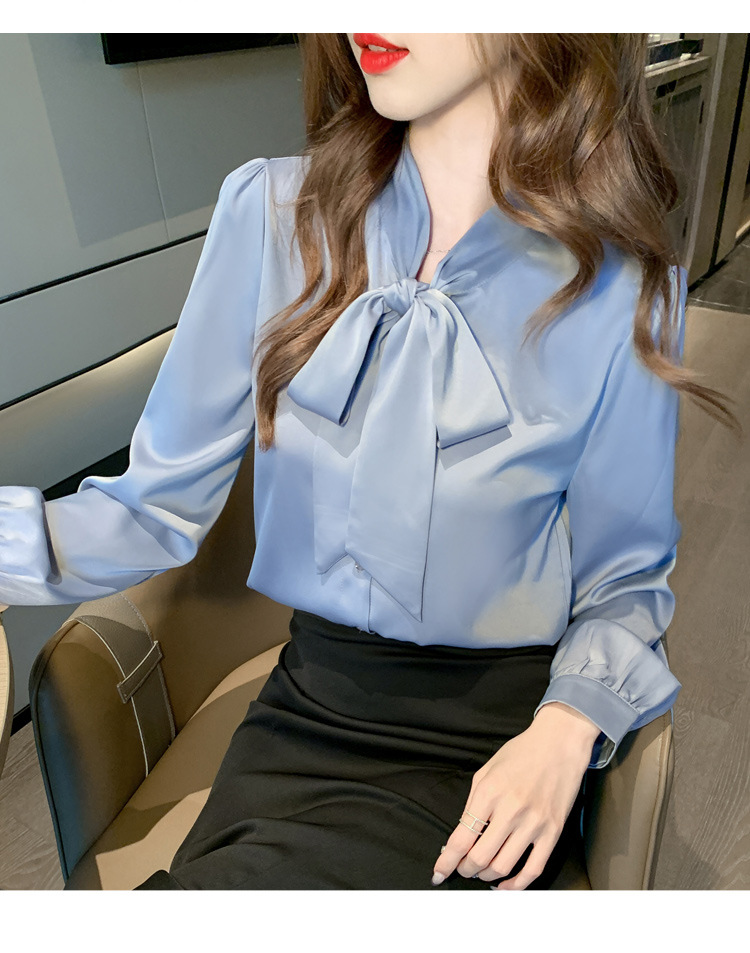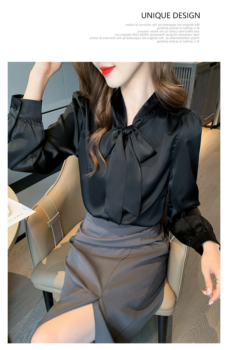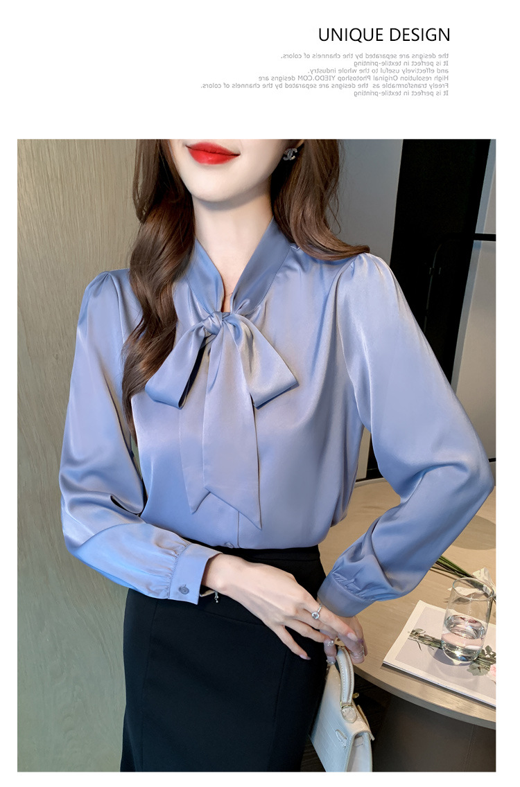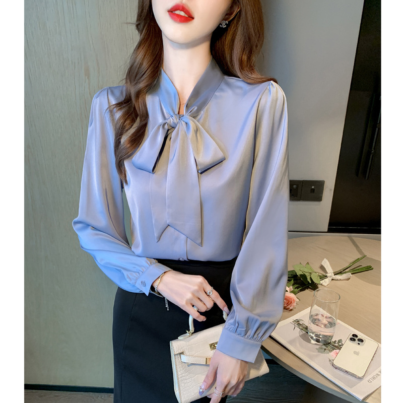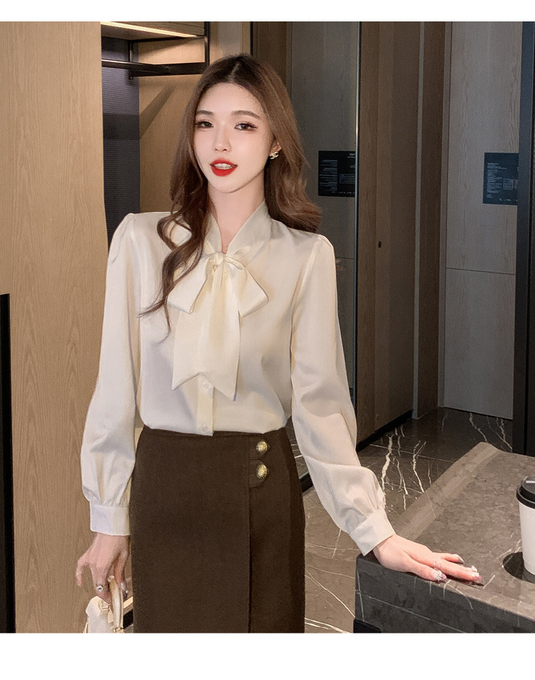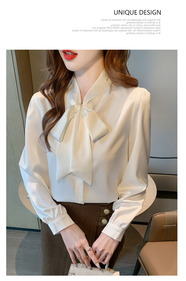 배송 2025 봄 통근 전문 셔츠 긴 소매 리본 쉬폰 셔츠 가을 하이 엔드 감각 내부 탑