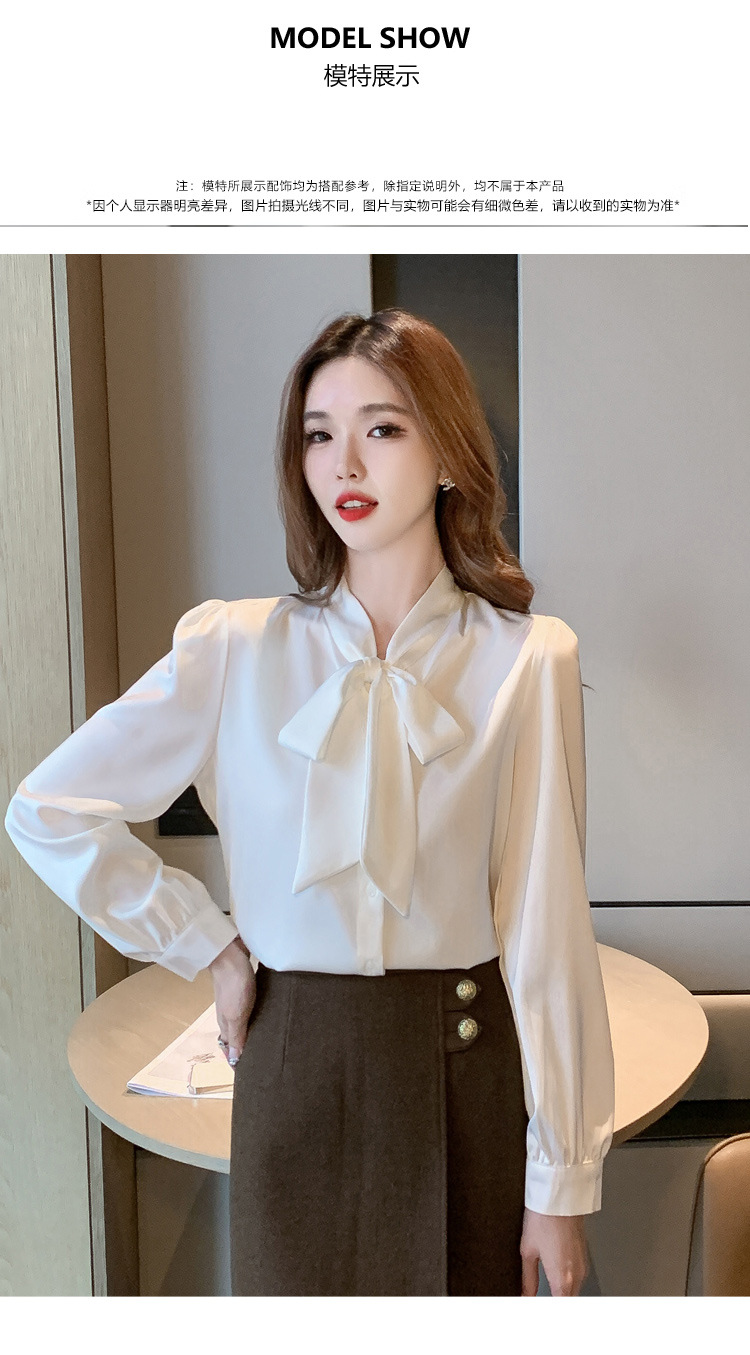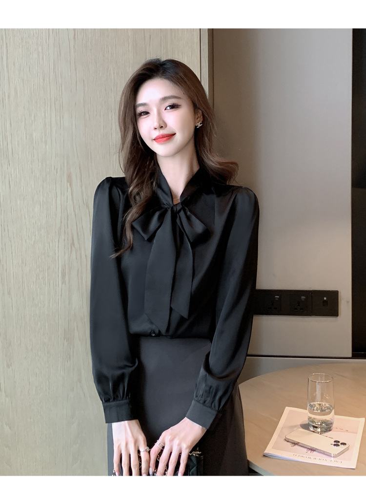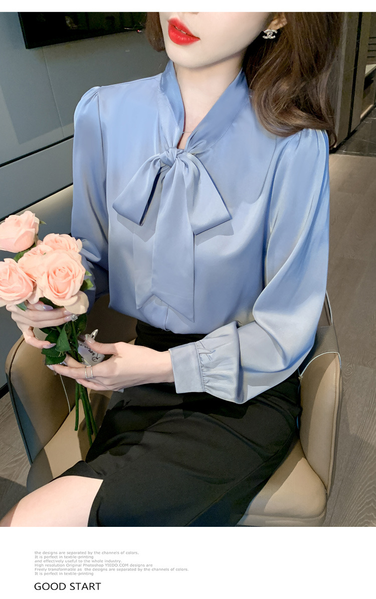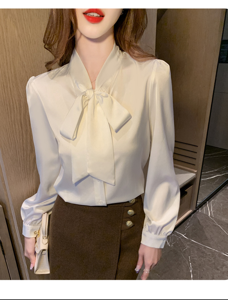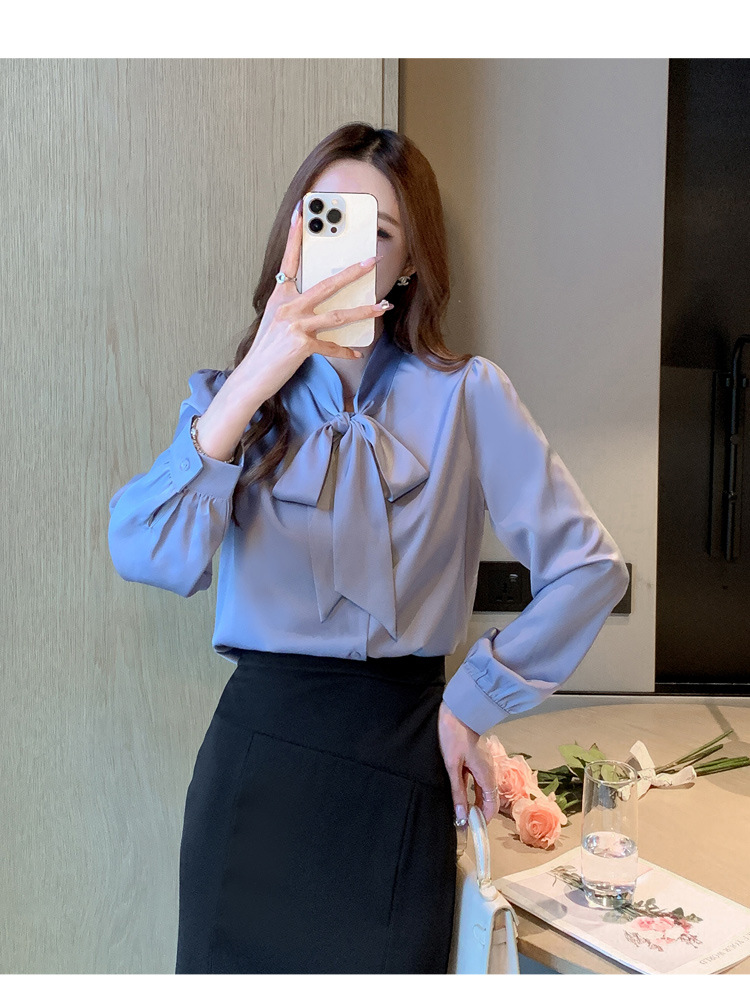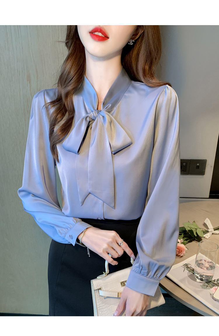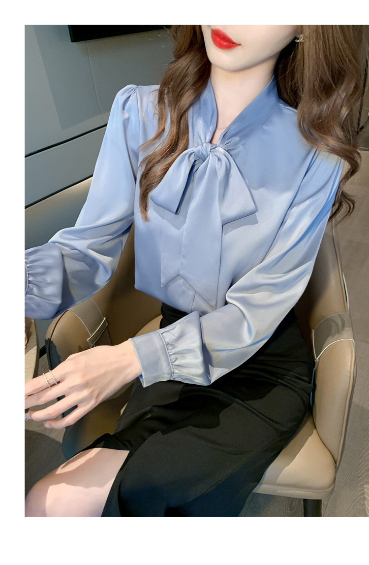배송 2025 봄 통근 전문 셔츠 긴 소매 리본 쉬폰 셔츠 가을 하이 엔드 감각 내부 탑
