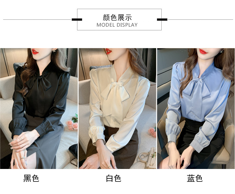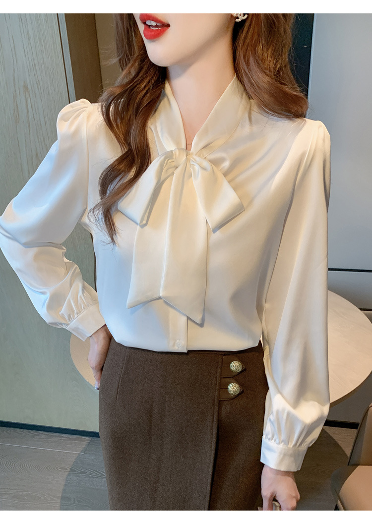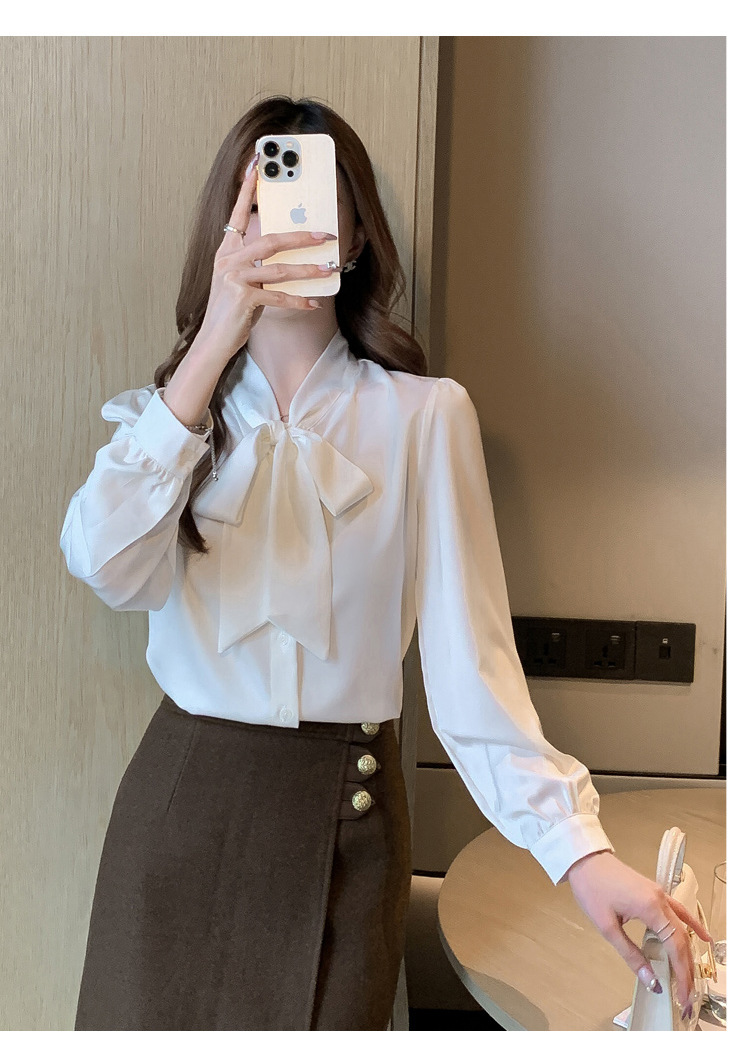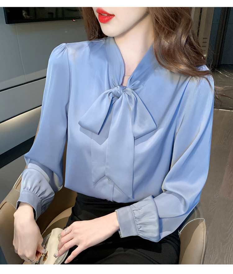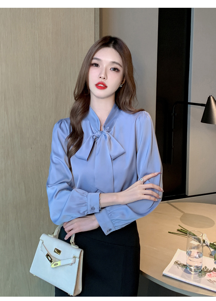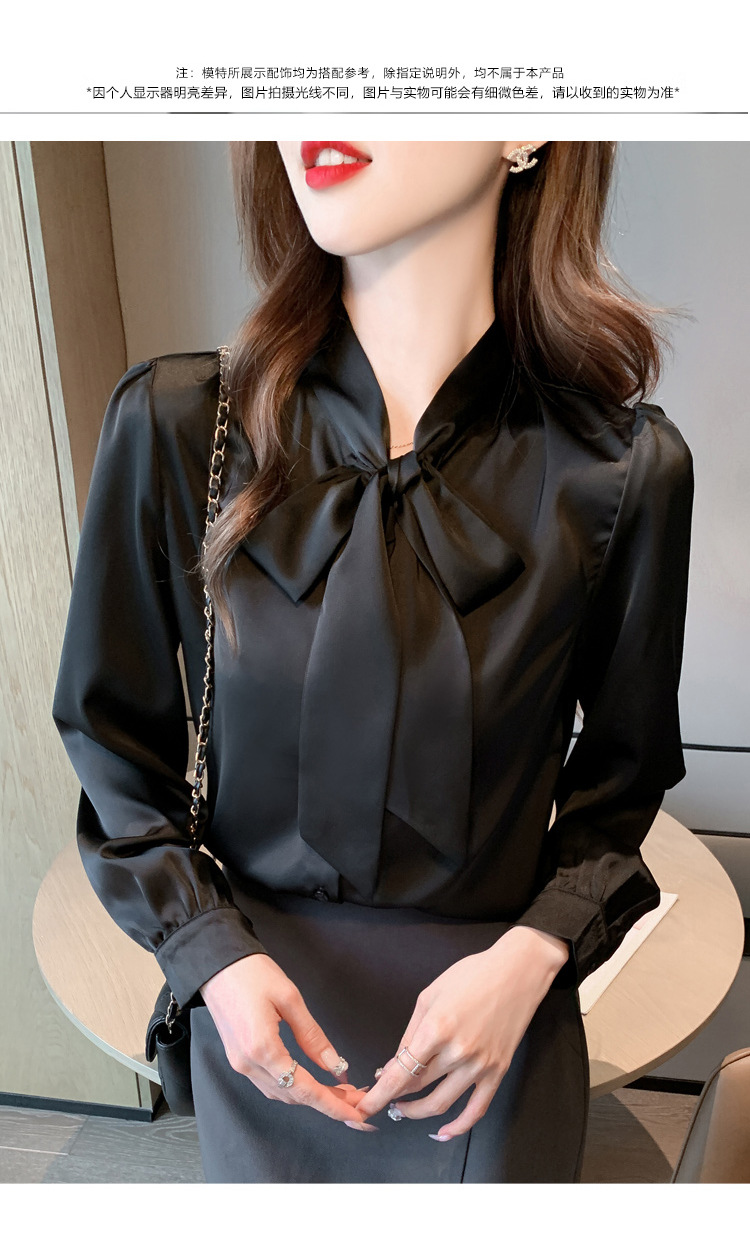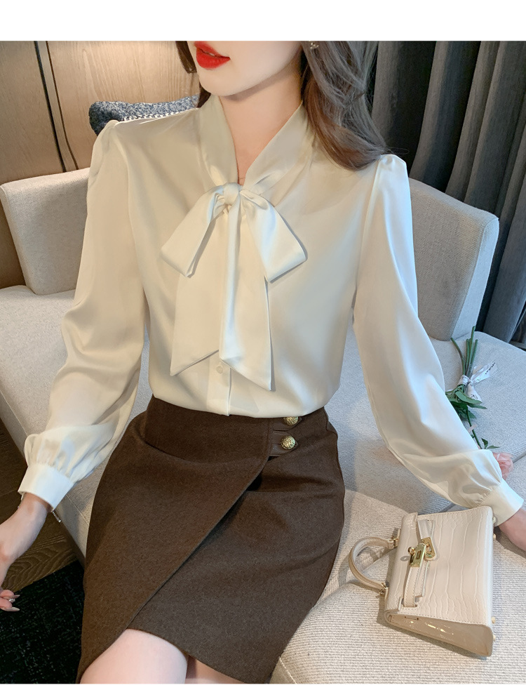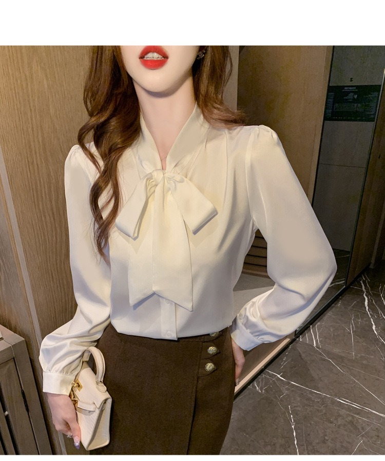 배송 2025 봄 통근 전문 셔츠 긴 소매 리본 쉬폰 셔츠 가을 하이 엔드 감각 내부 탑