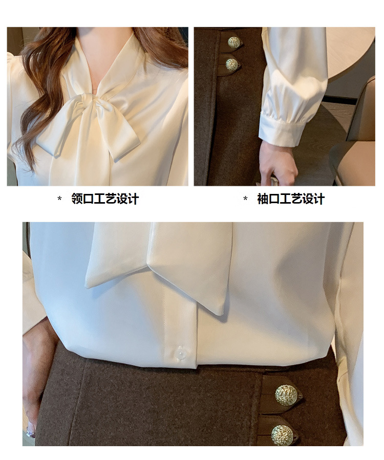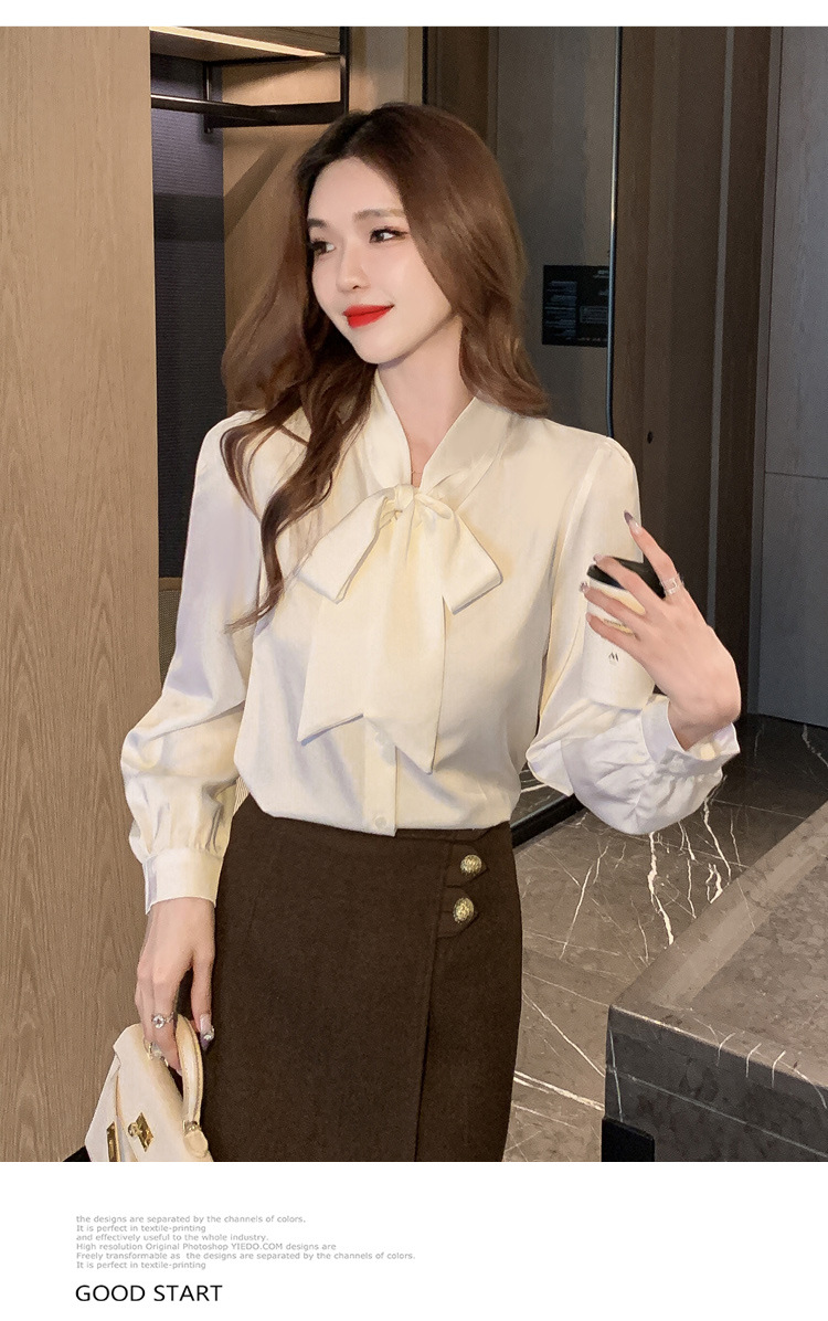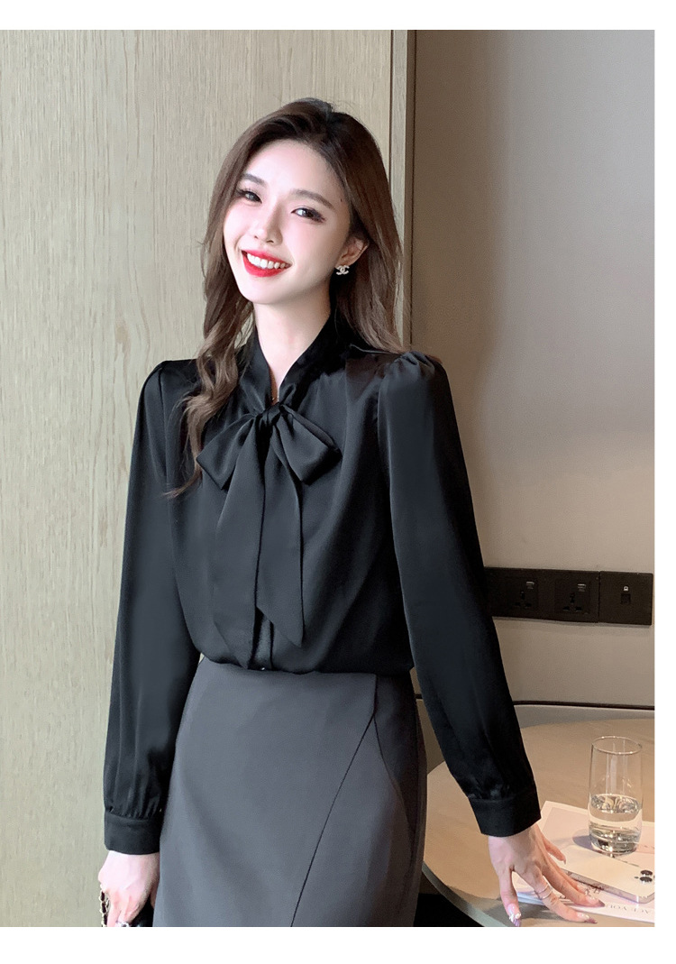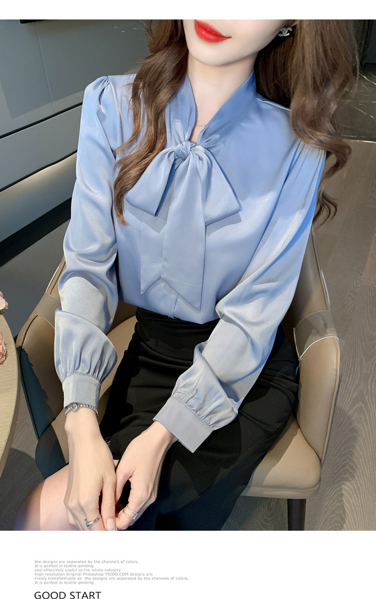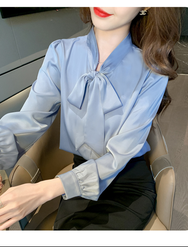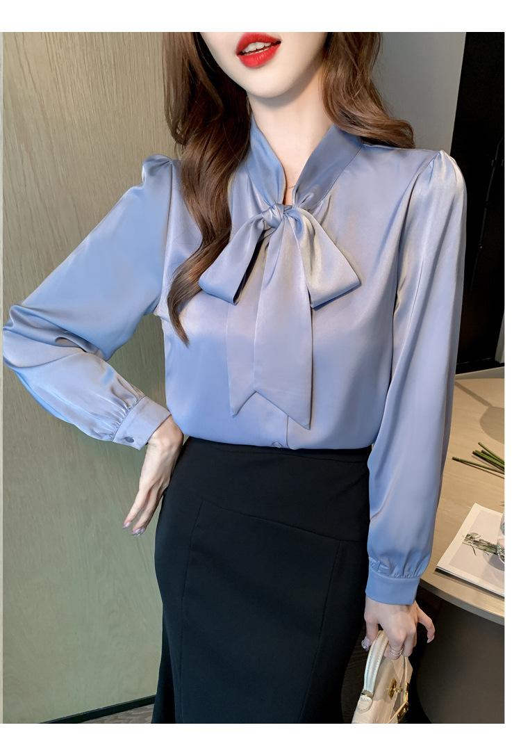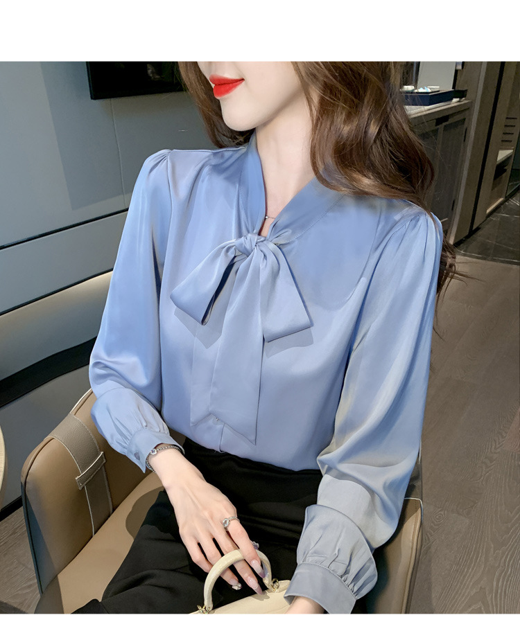 배송 2025 봄 통근 전문 셔츠 긴 소매 리본 쉬폰 셔츠 가을 하이 엔드 감각 내부 탑