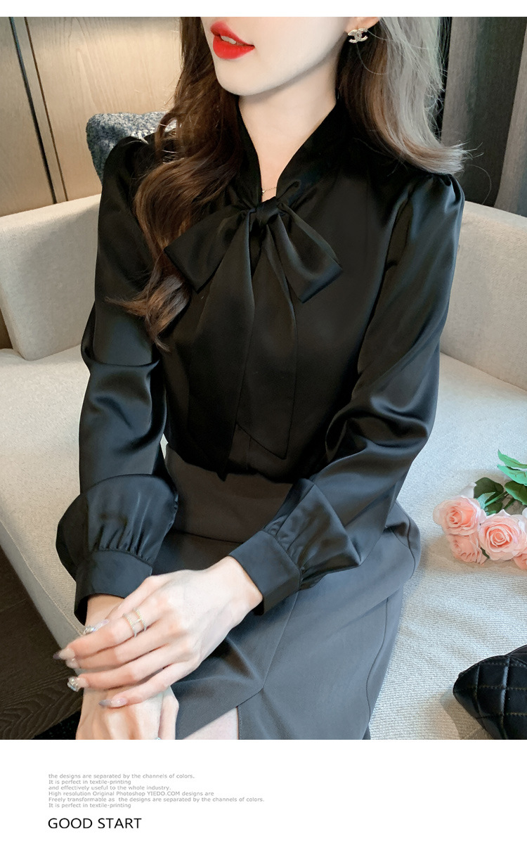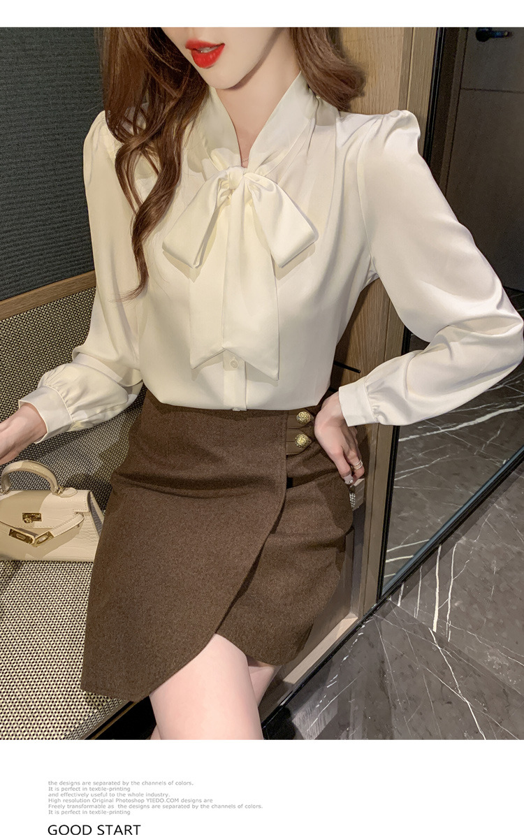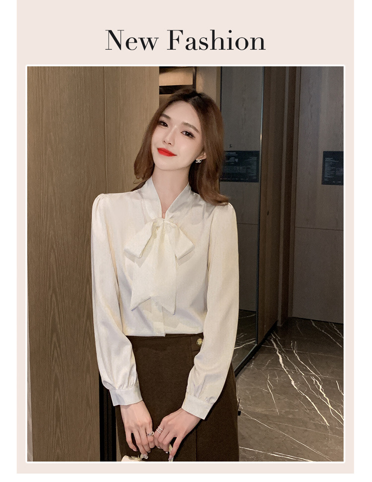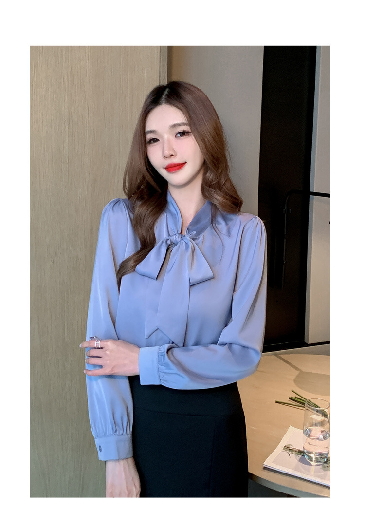 배송 2025 봄 통근 전문 셔츠 긴 소매 리본 쉬폰 셔츠 가을 하이 엔드 감각 내부 탑스토어 가기