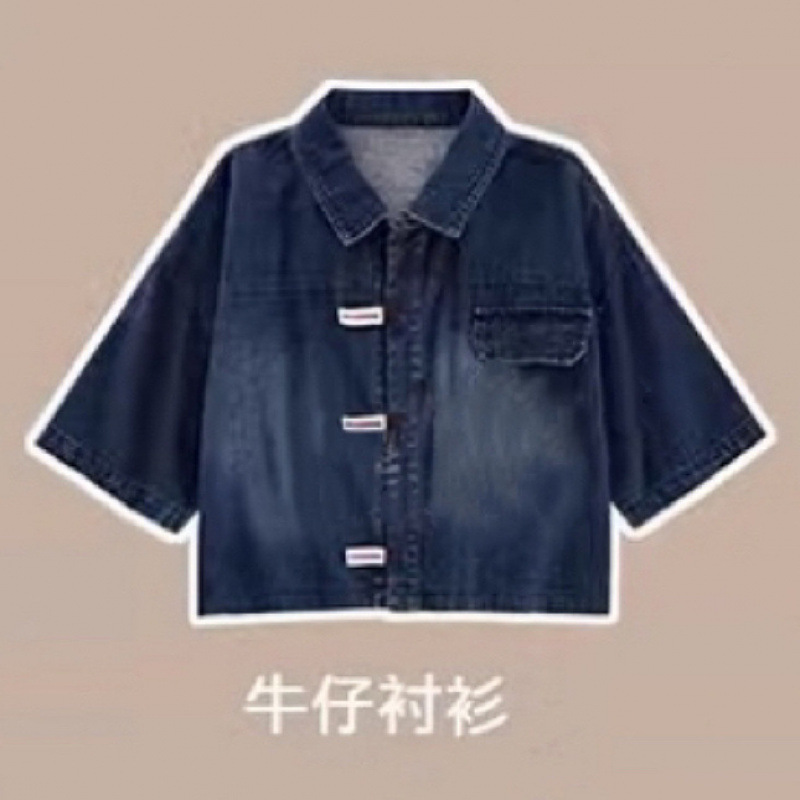 • 데님 숏셔츠 + 화이트 멜빵 (투피스 세트)