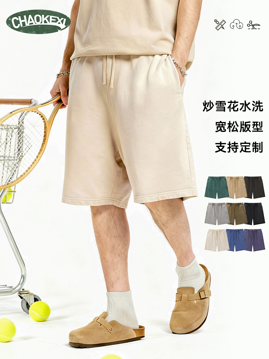 CKX 신상 미국 스타일 트렌디 브랜드 워싱 염색 빈티지 남성 반바지 헐렁한 오버사이즈 레트로 중간 길이 바지 남성용스토어 가기