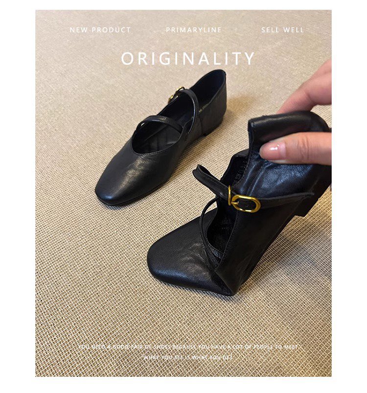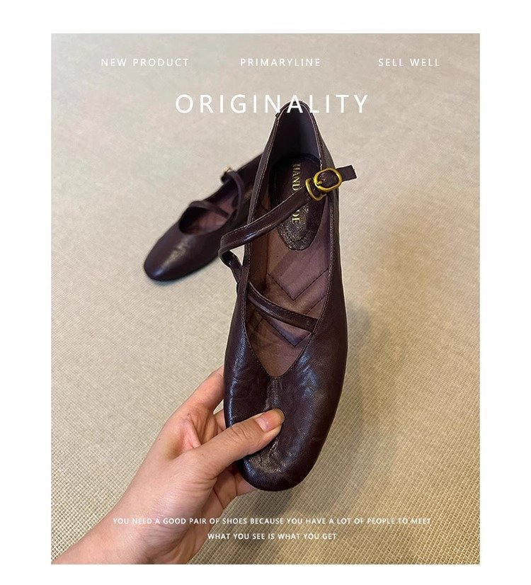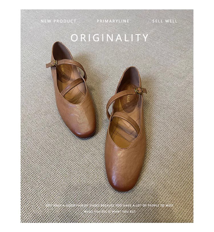 소프트 솔 소프트 표면 2025 새로운 패션 레트로 여성 신발 여름 플랫 신발 올 매치 작은 가죽 신발 벨트 버클 싱글 신발스토어 가기