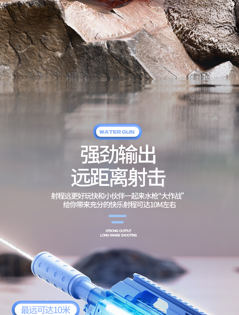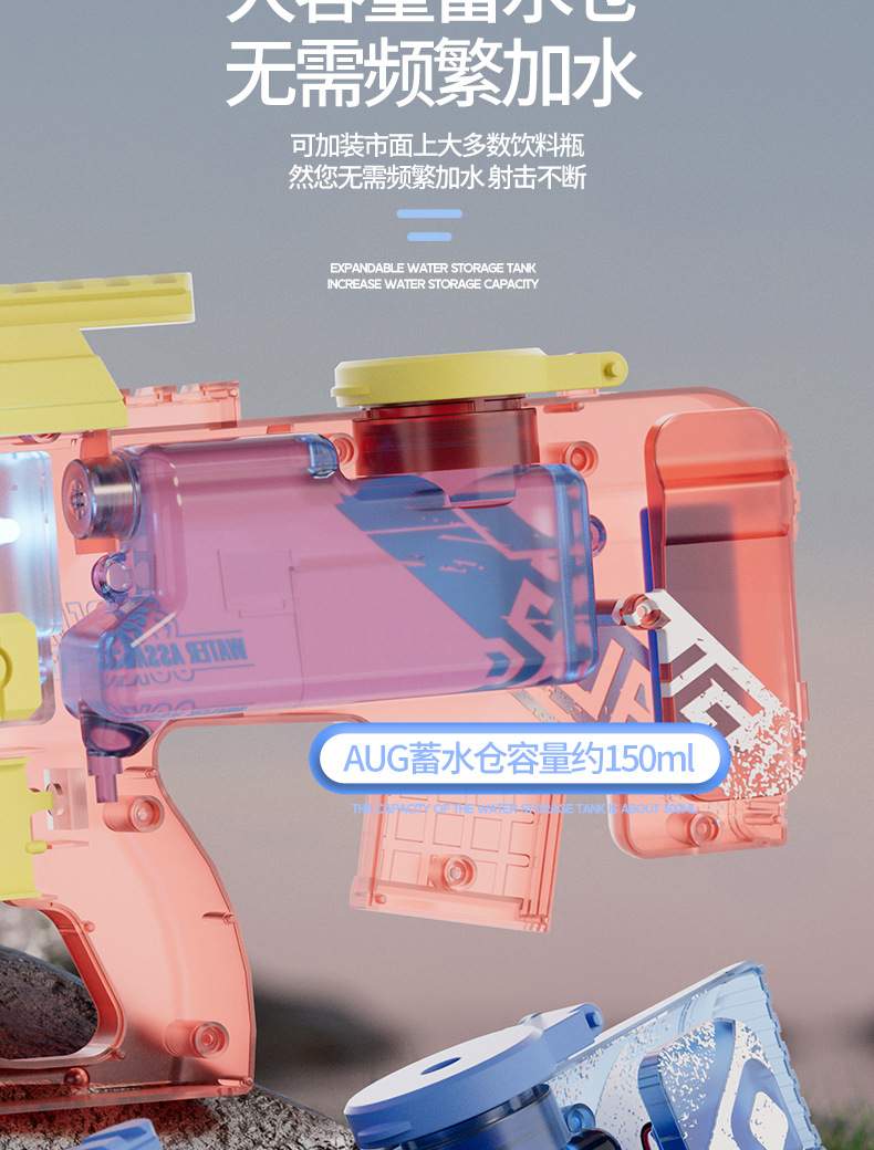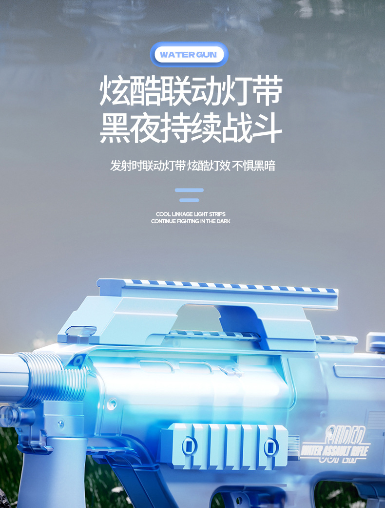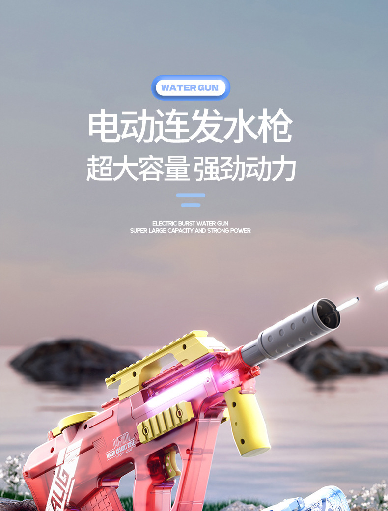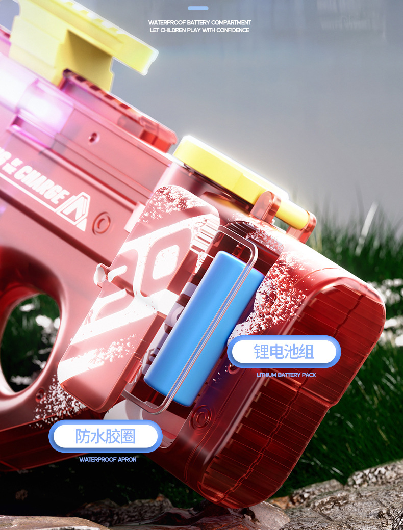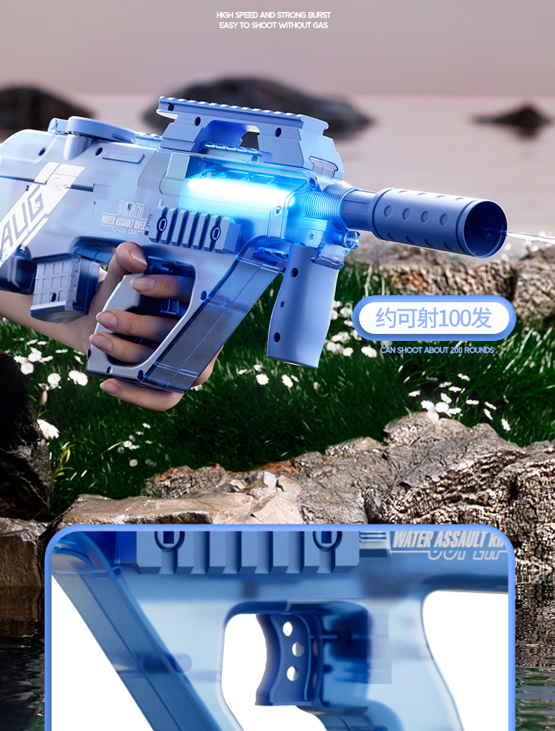 어린이 전기 고속 물총 AUG 버스트 P90 물총 조명 여름 해변 물 장난감