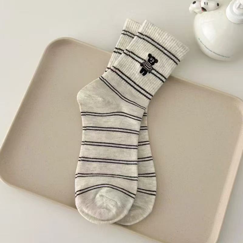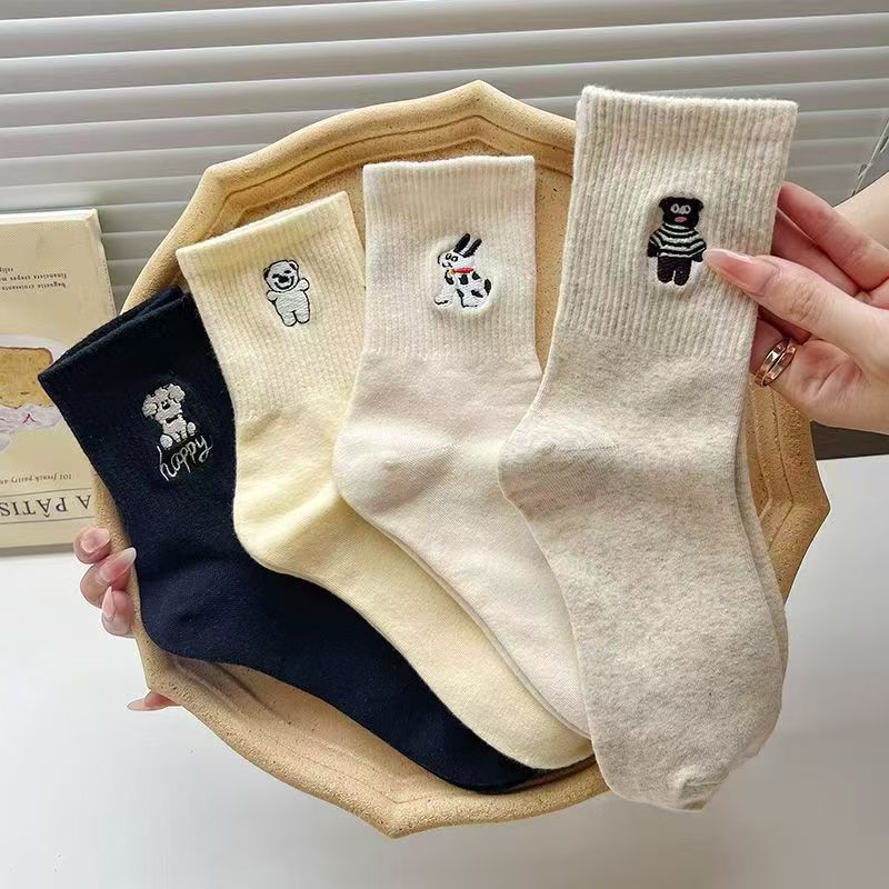 가을 새로운 스타일 양말 귀여운 개 자수 Ins 트렌디 한 강아지 양말 여성용 슬림스토어 가기