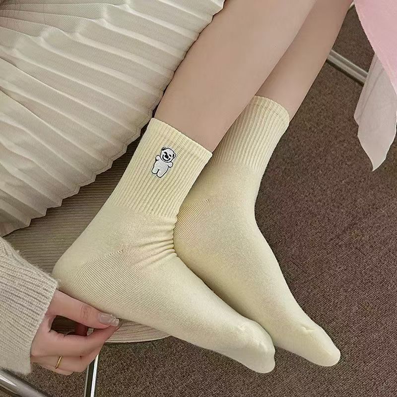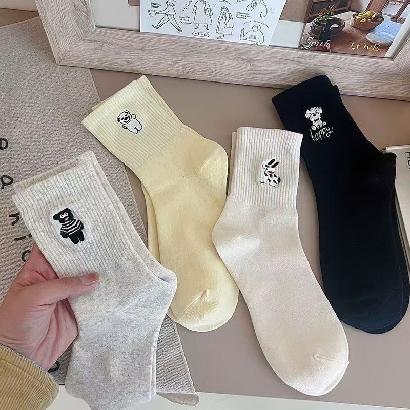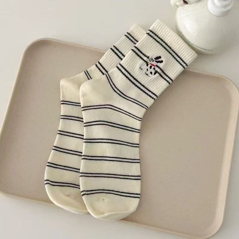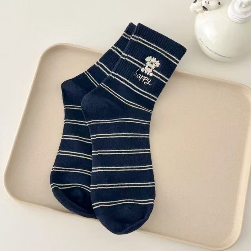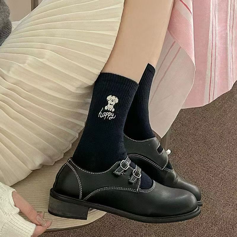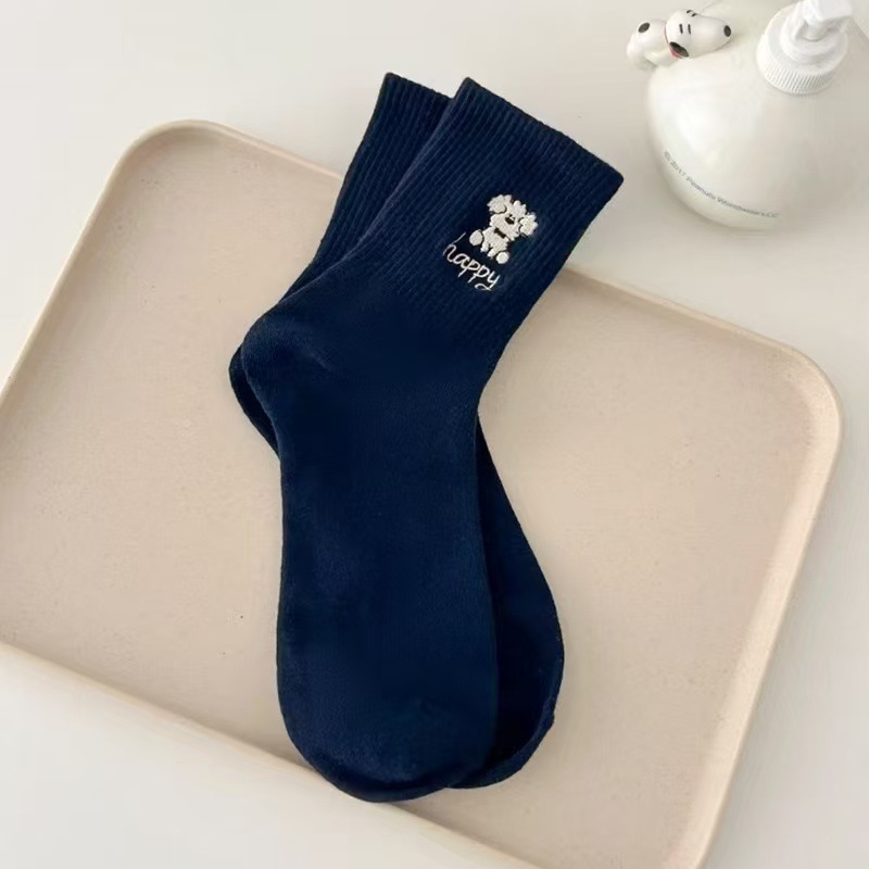 가을 새로운 스타일 양말 귀여운 개 자수 Ins 트렌디 한 강아지 양말 여성용 슬림