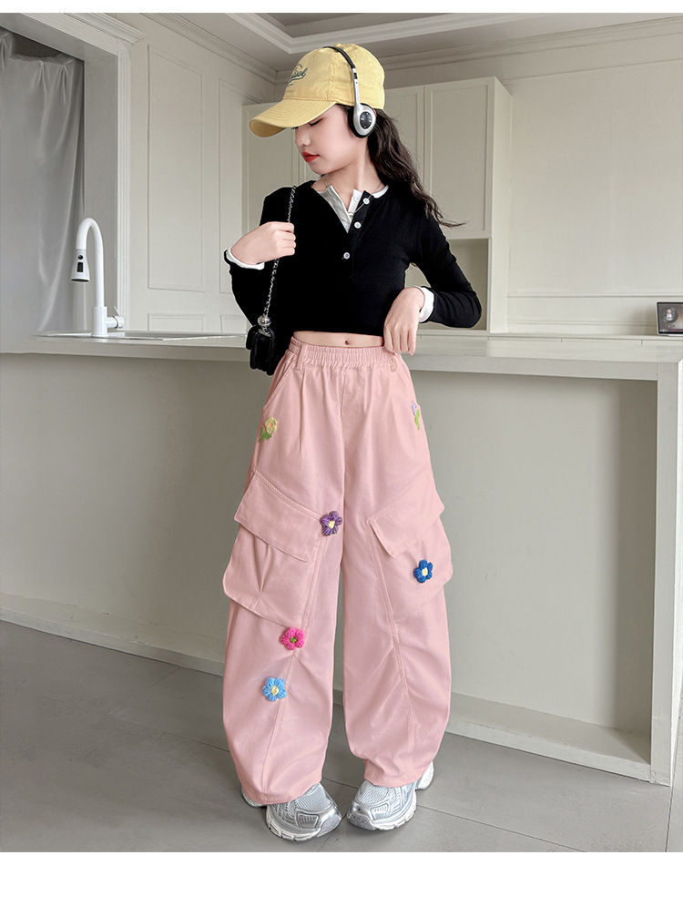 여자 커버 바지 캐주얼 봄과 가을 2025 새로운 서양 스타일 느슨한 힙합 패션 서양 스타일 큰 어린이 바지스토어 가기