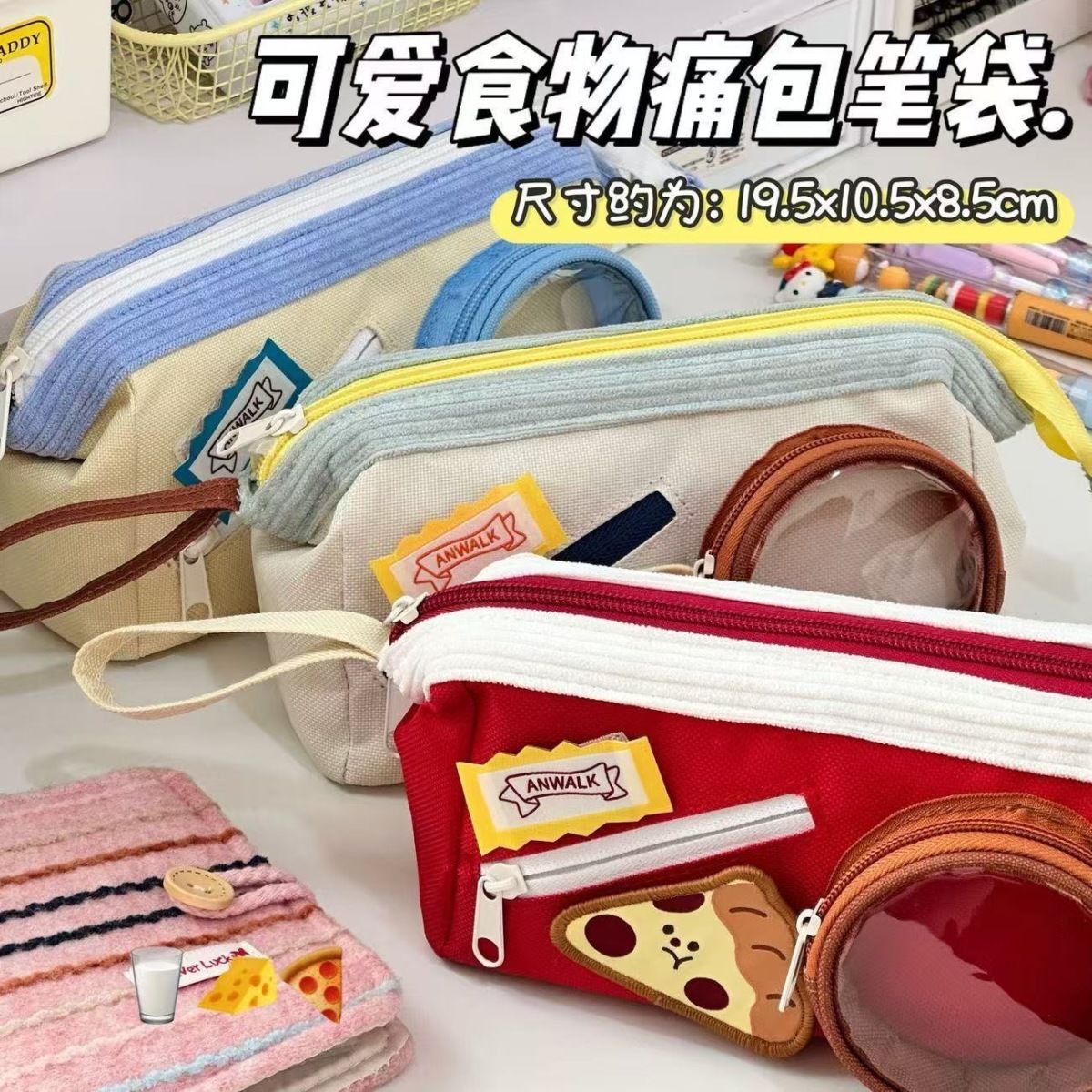 사랑스러운 음식 연필 케이스 피자 높은 색상 값 큰 용량 에 학생 문구 연필 케이스. 같은 단락이있는 작은 빨간 책스토어 가기