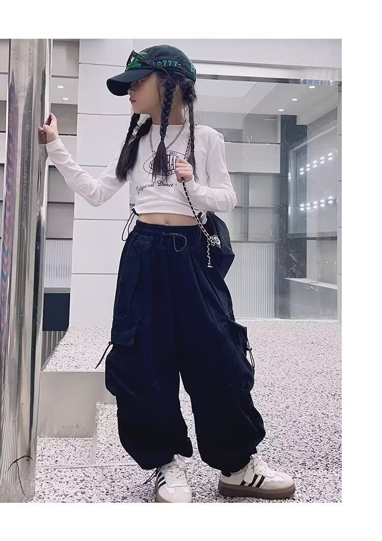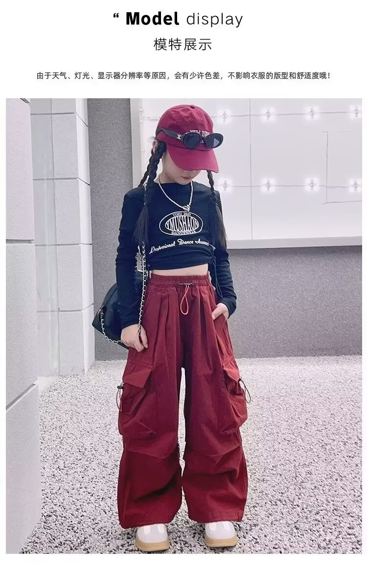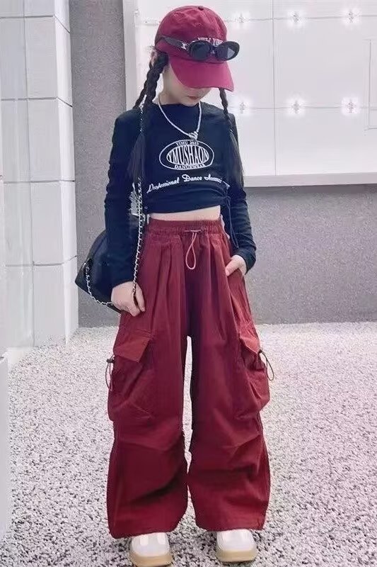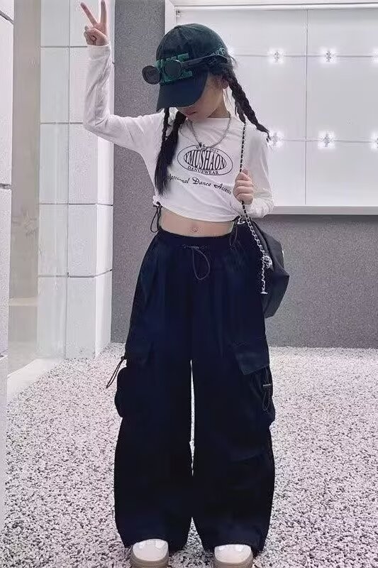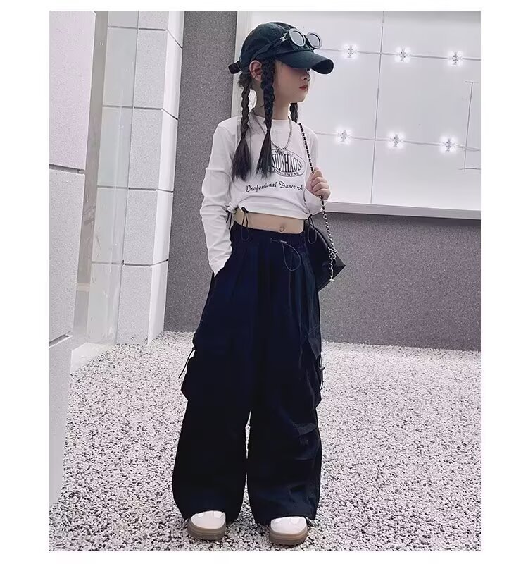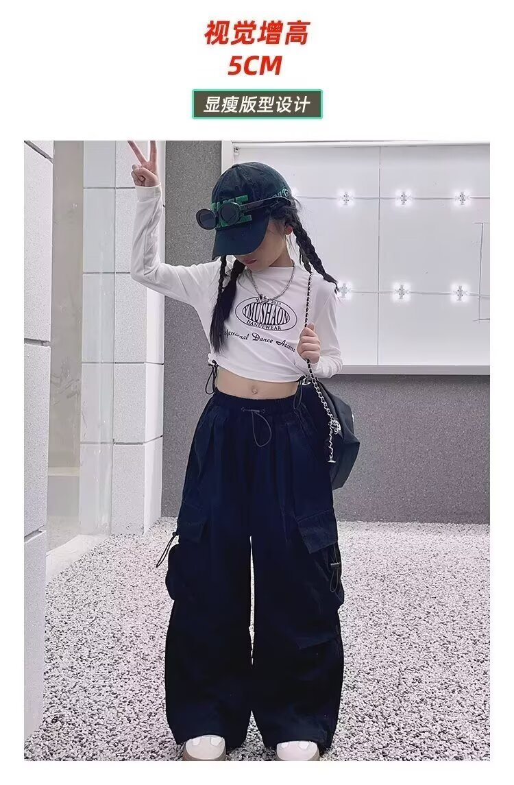 소녀 바지 커버 바지 힙합 새로운 봄과 가을 큰 어린이 2025 어린이 유행 재즈 댄스 의상 소녀 세트스토어 가기