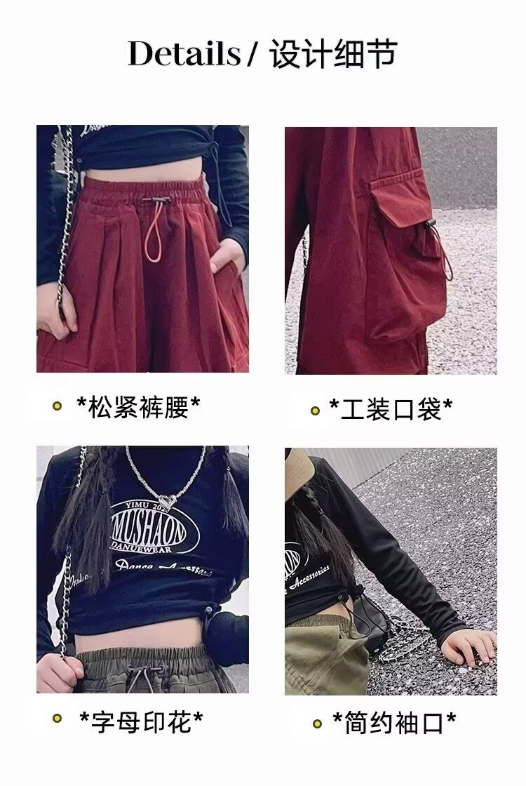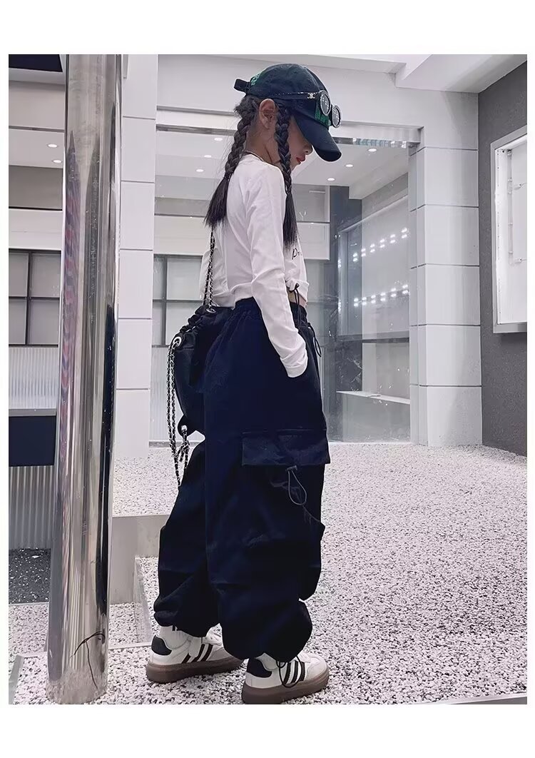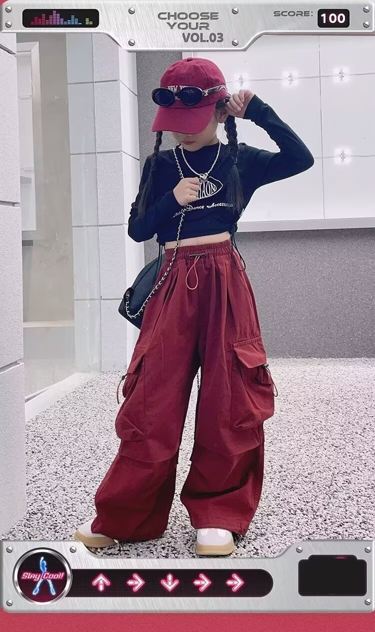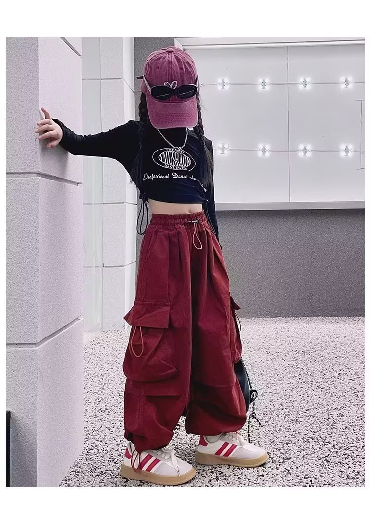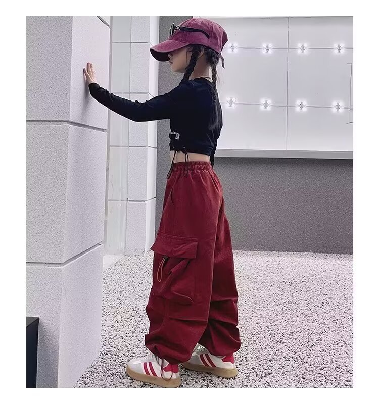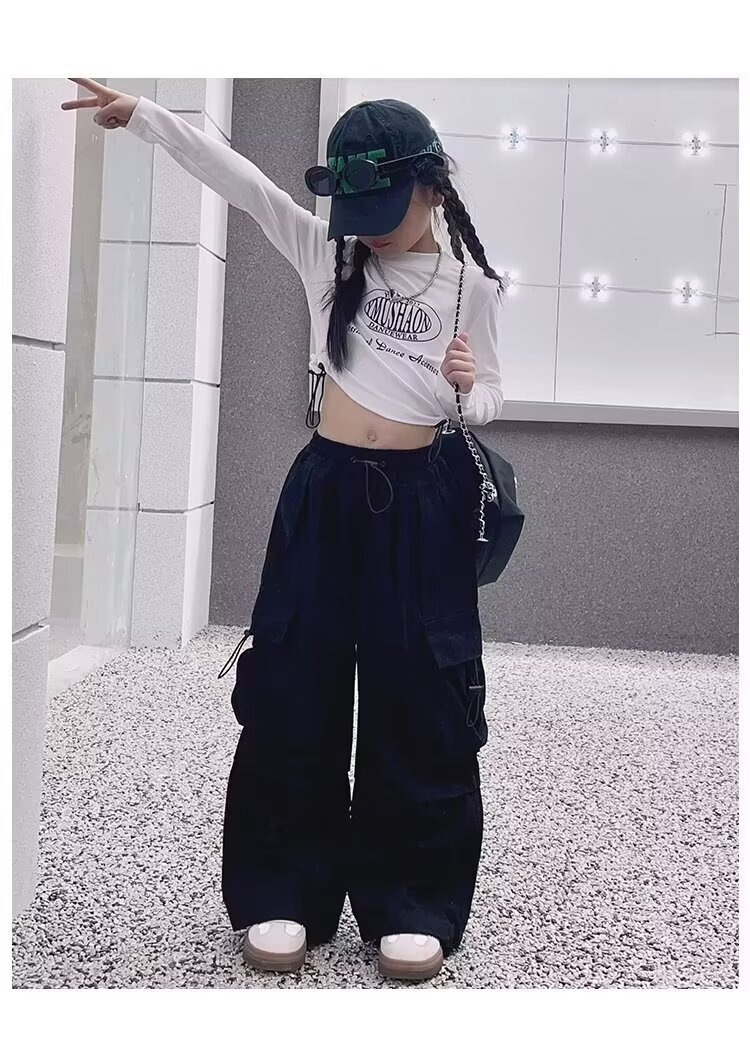 소녀 바지 커버 바지 힙합 새로운 봄과 가을 큰 어린이 2025 어린이 유행 재즈 댄스 의상 소녀 세트스토어 가기