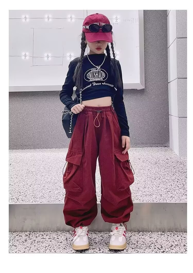 소녀 바지 커버 바지 힙합 새로운 봄과 가을 큰 어린이 2025 어린이 유행 재즈 댄스 의상 소녀 세트