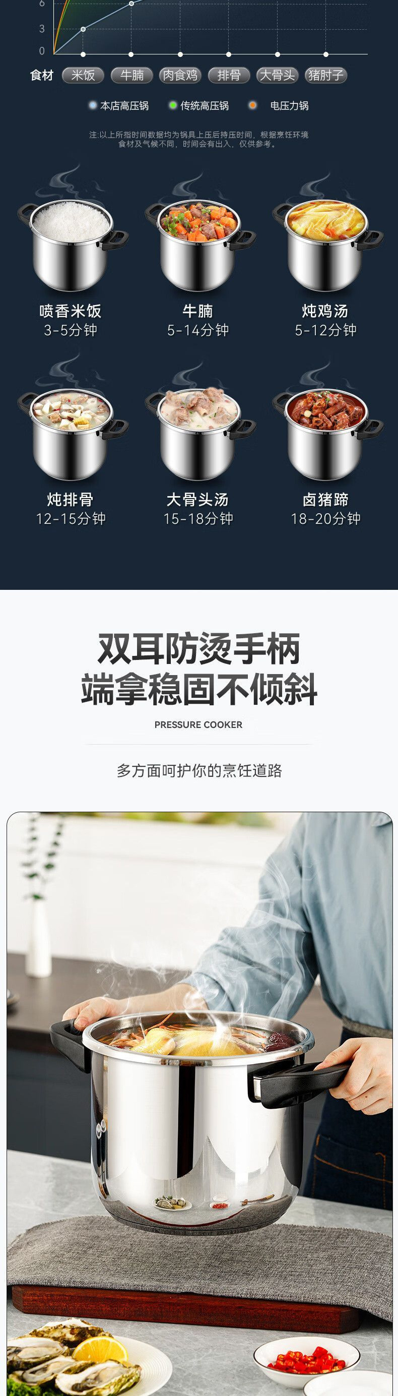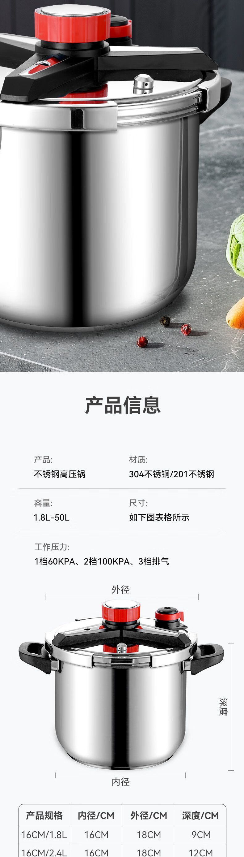 두꺼운 304 스테인레스 스틸 압력 밥솥 100kpa 대용량 5L/6/7L 밥솥 유니버설