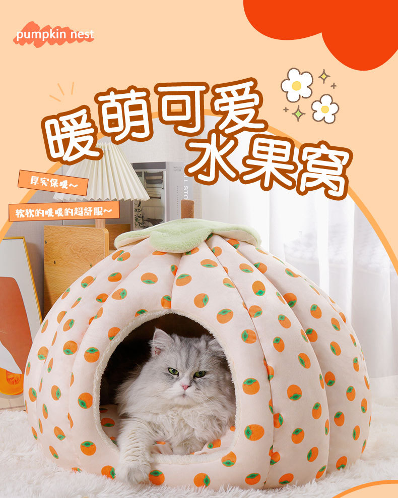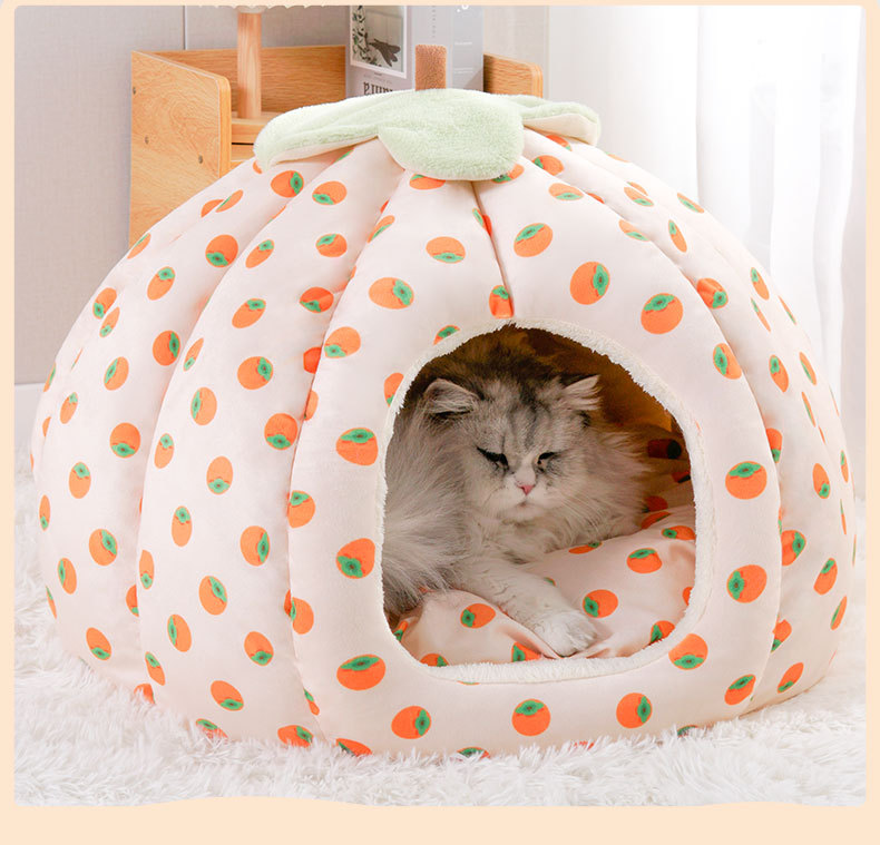 호박 고양이 침대 겨울철 따뜻함 사계절 사용 가능 고양이 오염 방지 수면 매트 두꺼운 보온 강아지 침대 고양이 침대
